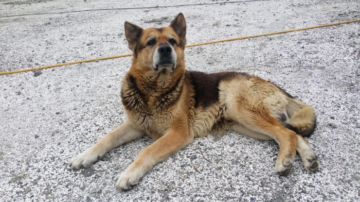 Un berger allemand paisible garde le ponton
