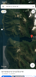Lunes 11 de Noviembre a la ocho de la tardePosicion : 42°10′ S, 72°22′ W