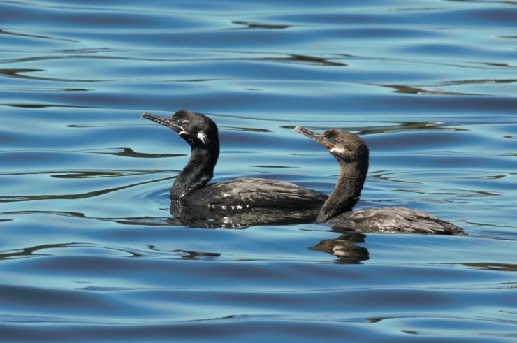 Puerto Montt. Couple de cormorans neotropic yeco en période nuptiale