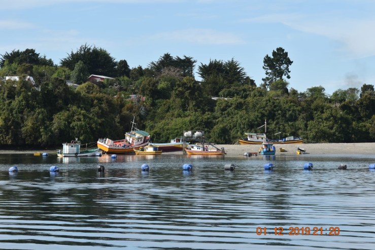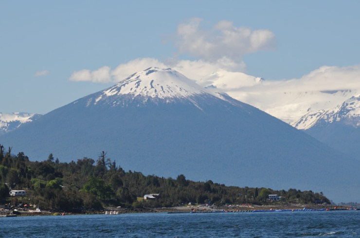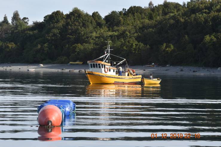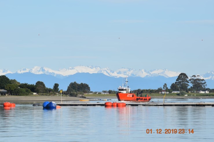 Abtao. Salmoneria, les Andes enneigées en arrière plan.