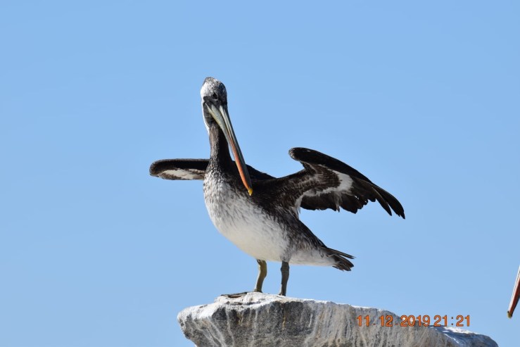 Higuérillas. Pélican du Pérou à pattes bleues