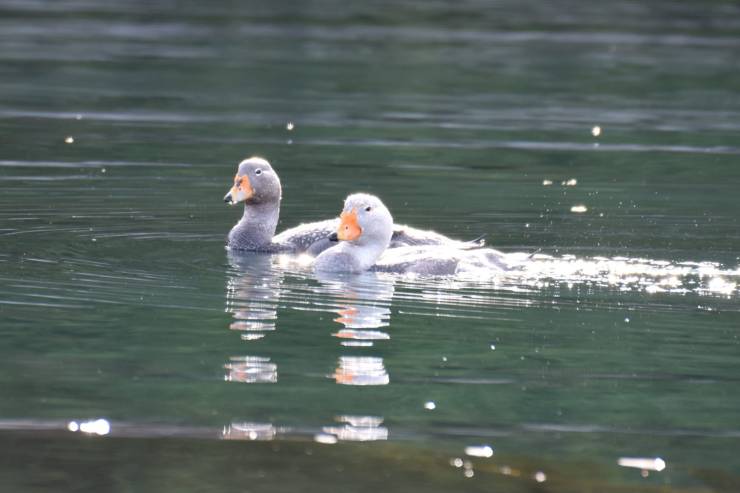 Abtao. Couple de canards brasse mers. Ils ne savent pas voler mais rament à toute vitesse.