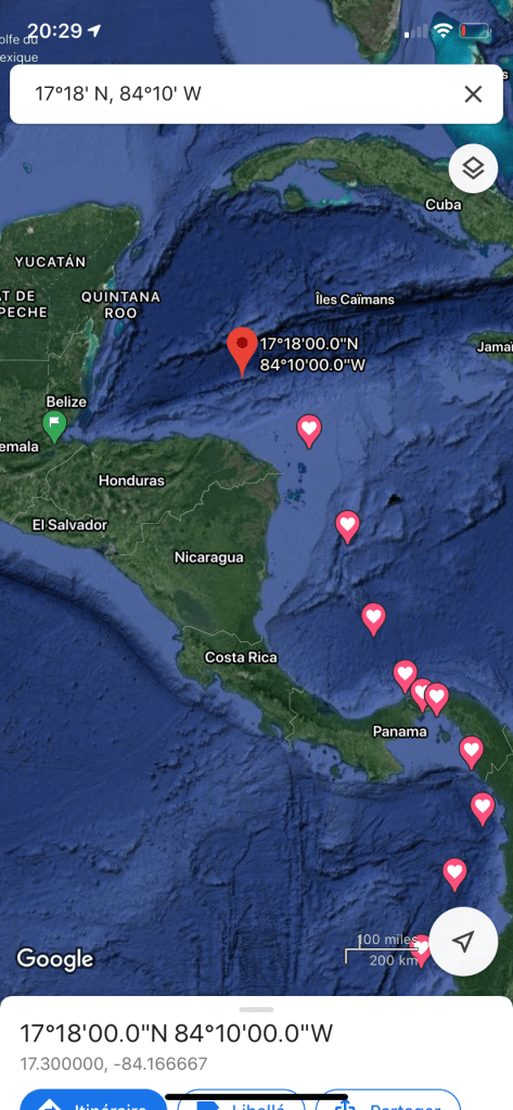 Position : 17°18′ N, 84°10′ W