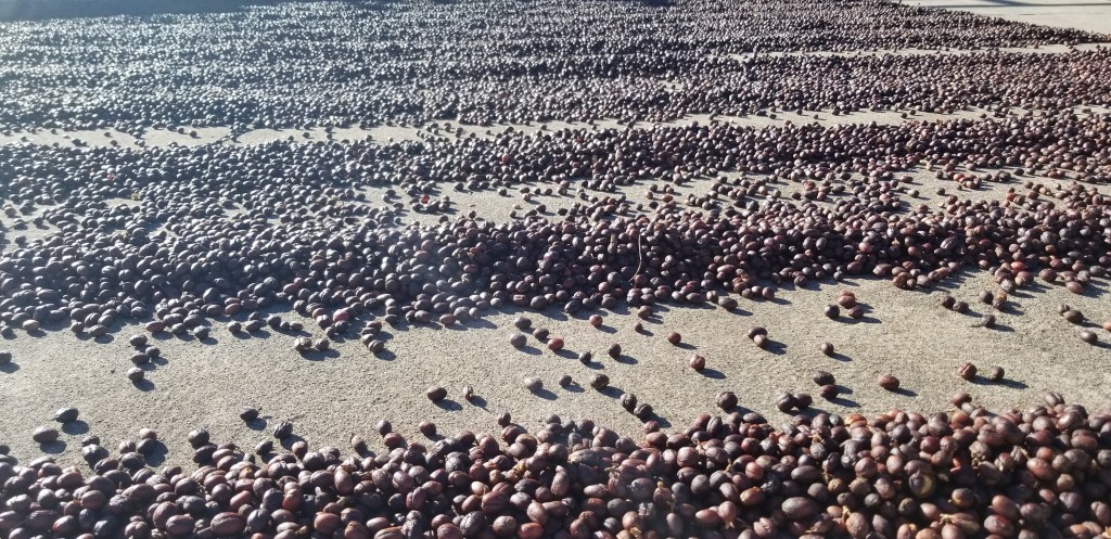 La production est bio , le seul engrais utilisé étant un mélange de fientes de poulet et des enveloppes de la graine de café. Il y a du travail pour toute la famille, de la cueillette au séchage en passant par le transport des sacs de 46 kg de graines prêtes pour l’expédition. Certaines tâches nécessitent de l’adresse, tel le greffage de pieds très aromatiques sur des porte greffe aux racines puissantes, opération uniquement réalisée par des femmes