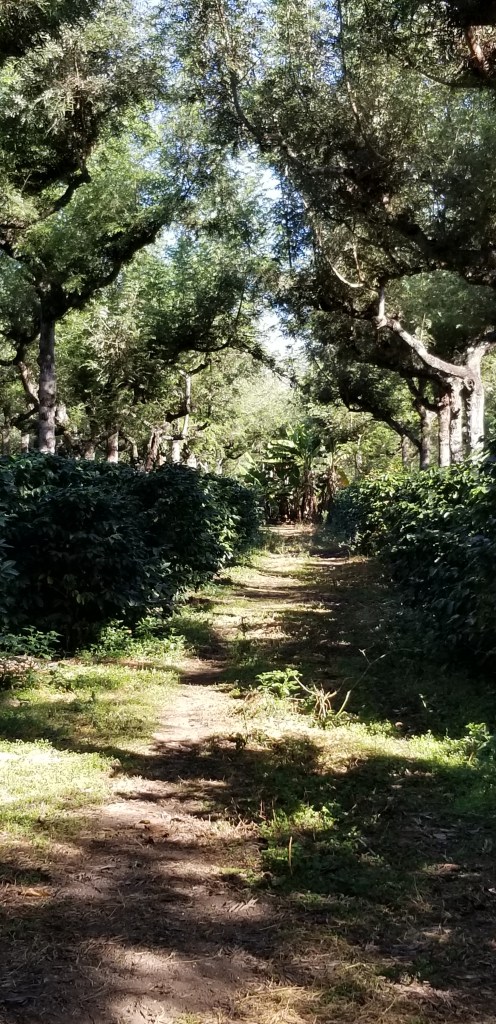 Sur la route 14, nous passons par une plantation de noix de macadamia, nouvelle opportunité de diversification agricole : les arbres ont été importés d’Australie il y a 45 ans et se sont fort bien acclimatés ici, dans la ferme « Valhala »