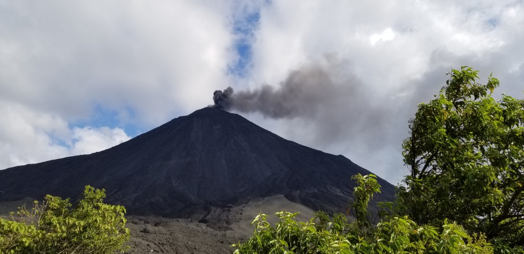 La route nous mène en direction du Pacifique. Sur l’autre flanc des volcans, des champs de canne à sucre s’étendent sur de grandes surfaces, au milieu des ruines et coulées de lave de l’éruption terrible qui a rasé des villages. emporté des ponts et tué des centaines de personnes en 2018.
