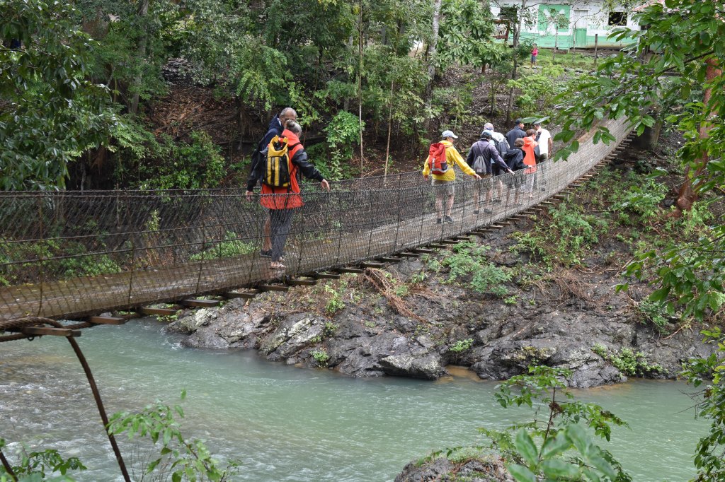 Il faut marcher environ 2 Km, et les mains du jeune homme paillonnent vers le ciel. Il y en aura pour environ 3 heures. Ah??! Les explications sont un peu compliquées et il apparaît progressivement que leur objectif n’est pas seulement de faire découvrir leur rivière par un sentier qui la domine, mais aussi de redescendre non pas par la route, mais par la rivière elle même.