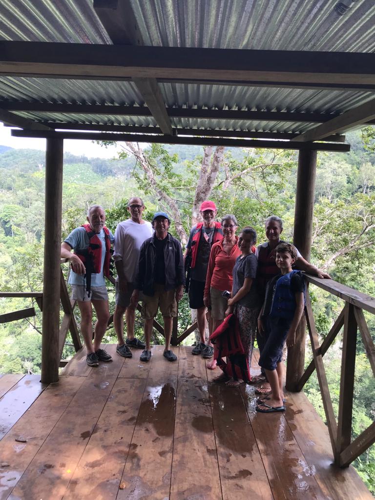 Pas question de se mettre en maillot de bains pour grimper dans le sentier abrupt qui gravit la paroie du cañon, ni d’emmener nos téléphones et appareils photos ou nos sous dans l’eau. Personne n’a emmené de sacs étanches…il faut confier toutes les affaires sensibles avec les sacs à dos déjà trempés de pluie, au chauffeur qui redescend avec le camion, avec Claude, dont les vêtements de coton se prêtent mal à l’exercice. Il est donc redescendu avec le chauffeur et le petit camion 4×4, ce qui lui a valu bien des émotions : entre temps, les averses avaient redoublé, et la piste gorgée d’eau était devenue franchement glissante.