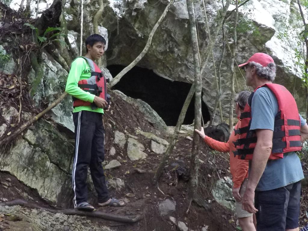 Pour ajouter au mystère du lieu, le jeune maya montre une grotte qui sert à une cérémonie religieuse pour célébrer le « lait » d’un gommier local qui produit une sève au parfum d’encens.