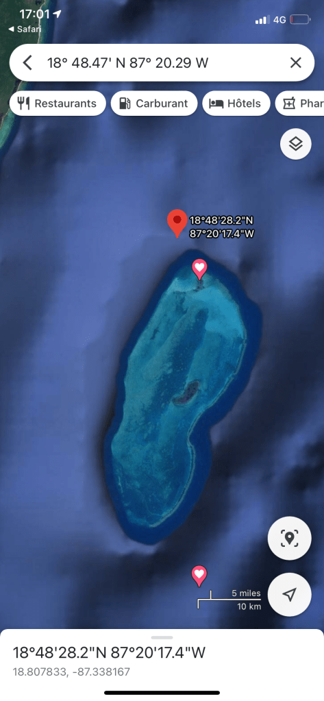 Position le 9 fevvrier à 8:30 locale (14:30 UTC) : 18° 48.47′ N 87° 20.29 W