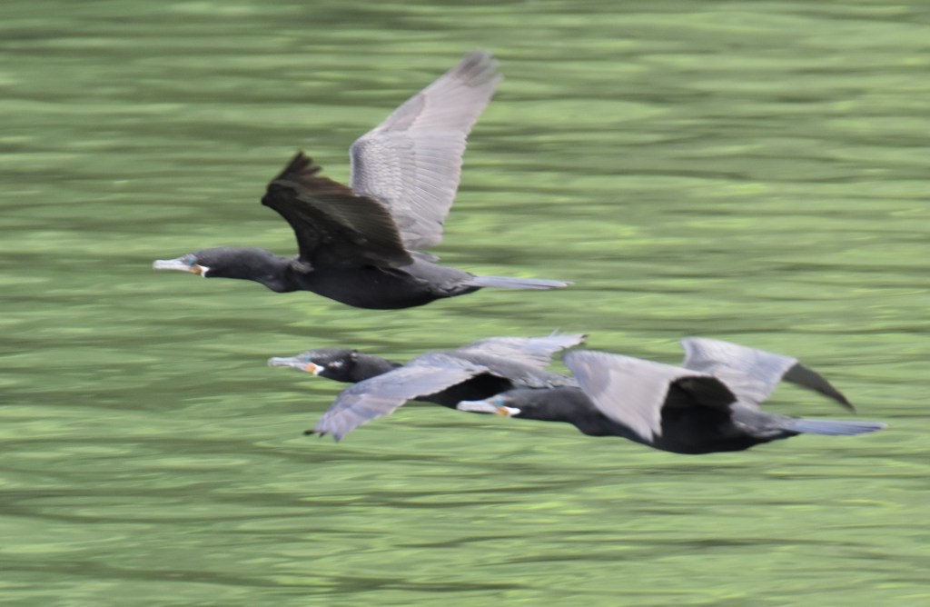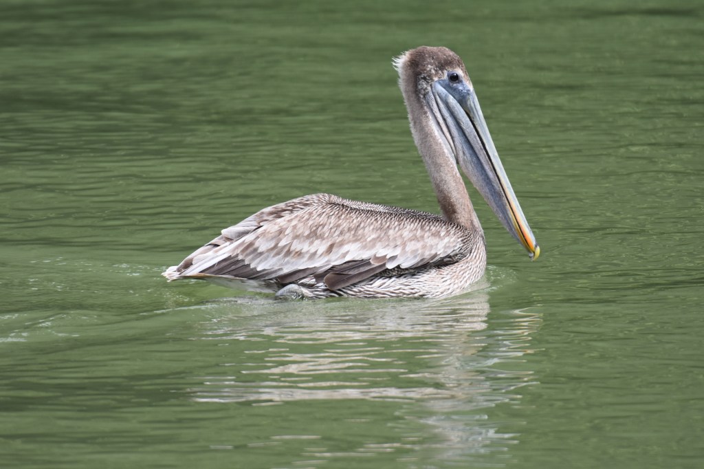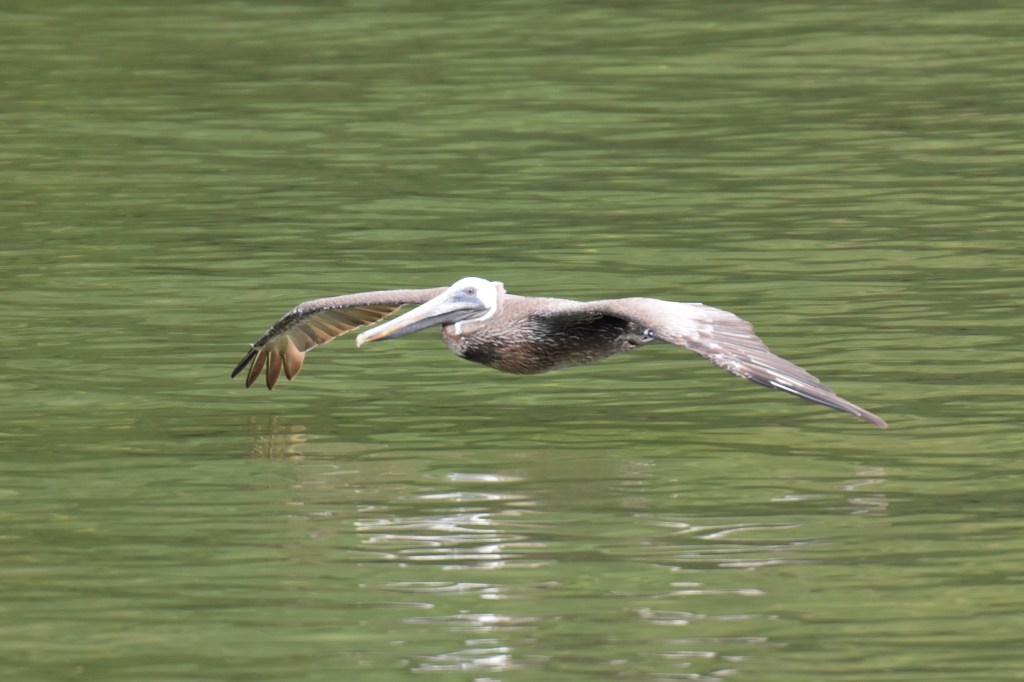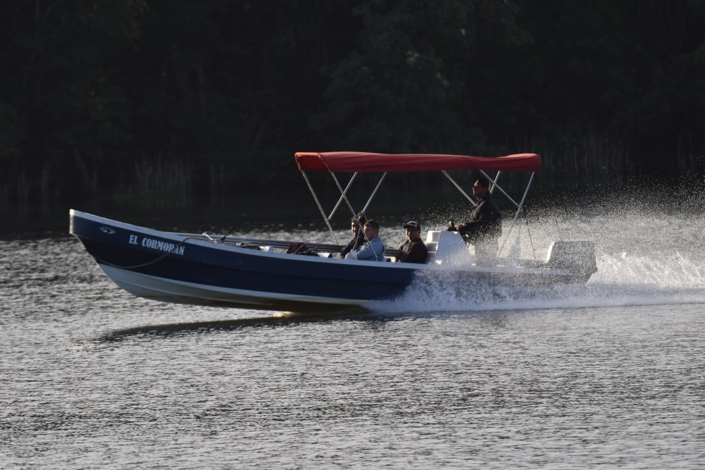 trafic intense sur le seul pont qui enjambe le rio, sonorité particulière des échappements libres bloqués pour faire frein moteurpêcheur en pirogueLancha taxi entre el Relleno et LivingstonUn cormoran construit son nidCouple de CormoransPélican Pélican juvenileHirondelle des mangrovesUne hirondelle des mangroves se repose sur un chandelier du bateauGrande aigrette