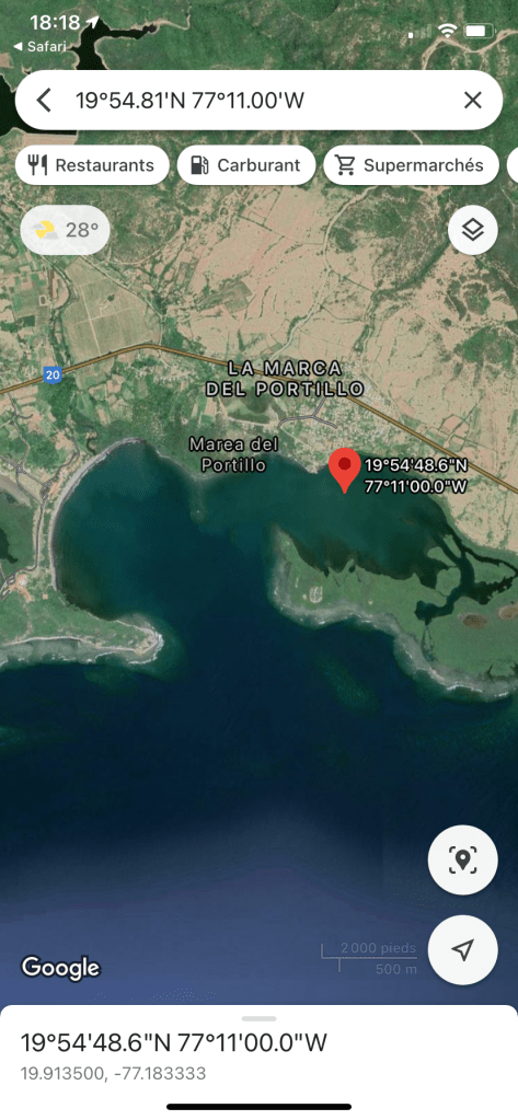 mouillage cette nuit à 19°54.81’N 77°11.00’W, Marea del Portillo