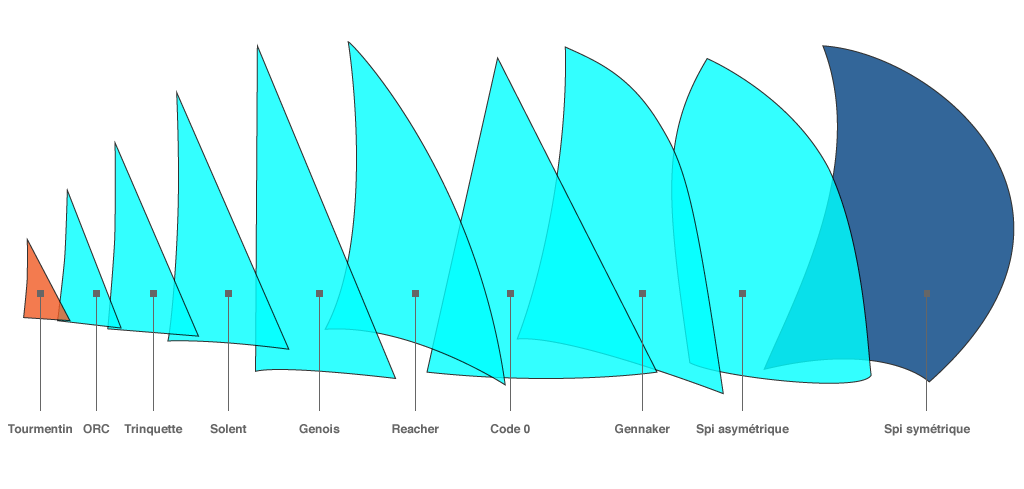 Les voiles sont gréées en fonction des allures et de la force du vent.