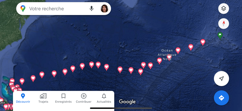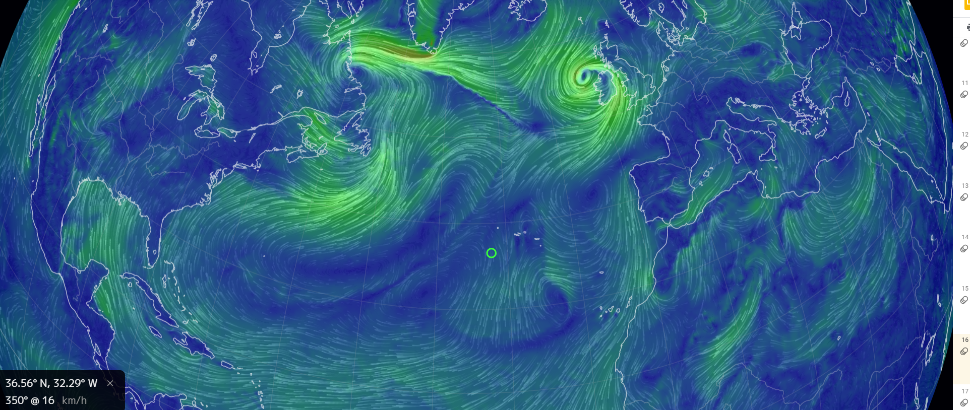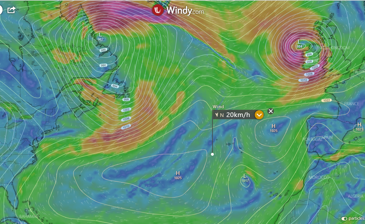 Comme prevu, et comme un cadeau du ciel, le vent a ete portant puis au travers, par longue houle et mer calme, permettant de parcourrir sous spi puis voiles en ciseau, puis sous gennacker 380 milles en 48 heures. Cette nuit le vent est passe au NW, le gennacker a ete remplace par le Yankee au pres bon plein.