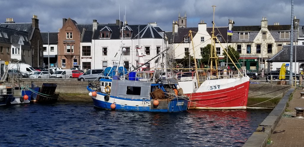 Au bout de l’ile de Lewis, Stornoway est la plus grande ville des Hébrides. Ses installations portuaires accueillent de nombreux bateaux de pêche et une marina sympathique pleine comme un œuf où par chance une place venait de se libérer. Le fort vent dehors n’est pas seul responsable de la présence de nombreux voiliers au port. La ville attend 20 000 personnes venues cette semaine pour un festival de musique celtique : HebCelt pour Hebridean Celtic Festival. Un chapiteau a été dressé devant le château, les bateaux de la marina seront aux premières loges pour bénéficier du son à défaut de spectacle . Le festival n’a pas pu être tenu depuis 3 ans en raison des mesures imposées pendant la pandémie.