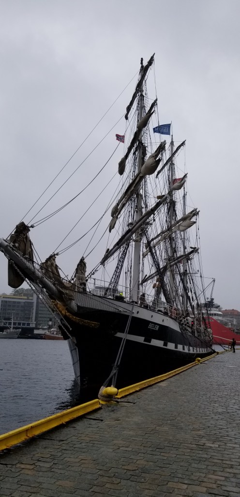 Le Belem est parti pour les îles Feroe, au nord des Shetland. Ensuite il redescendra vers Glasgow en passant par les Hebrides, aperçues au passage, sous voiles, puis vers Cork en Irlande en passant par le Saint George Channel, avec une escale dans l’ile de Man, Falmouth en Pays de Galle après une escale aux Scilly, Penzance est bien trop petit pour lui, avant de longer les côtes anglaises et traverser la Manche pour rentrer tranquillement à Dieppe début septembre.