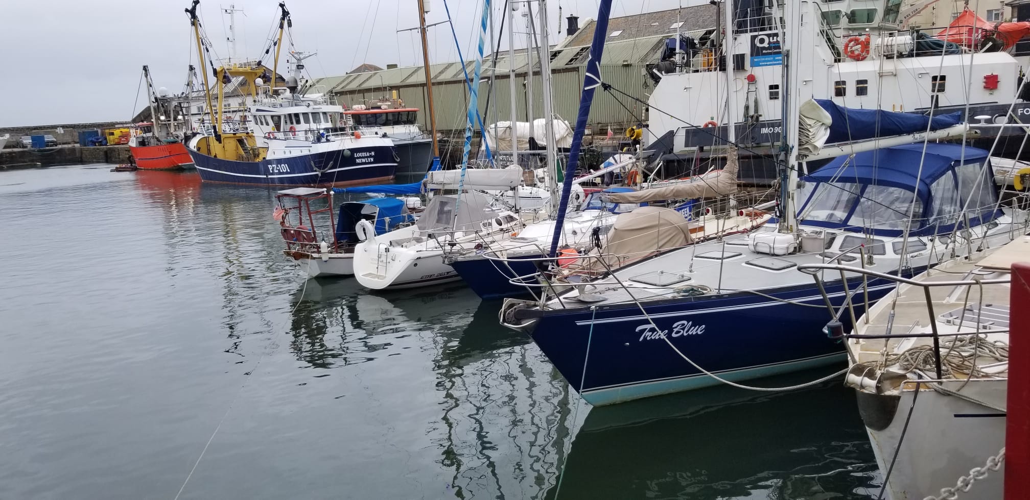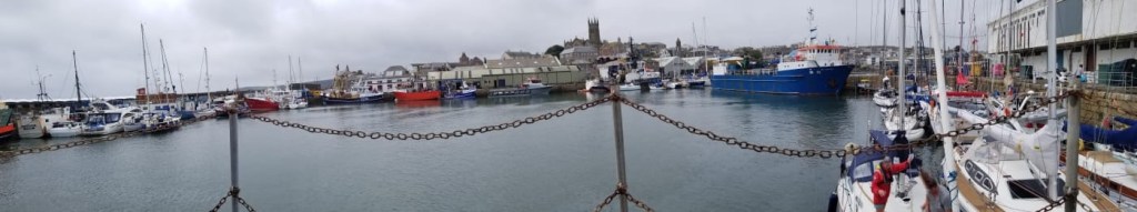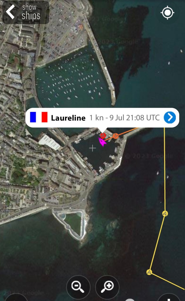 A plus de huit nœuds pendant une bonne partie de la traversée sous voiles, La Laureline est arrivée juste à temps pour l’écluse du port de Penzance à la marée haute de 23h26. C’est l’ainé qui a fait la demande d’entrée par VHF au Harbour Master, dans un parfait anglais (répété à l’avance).