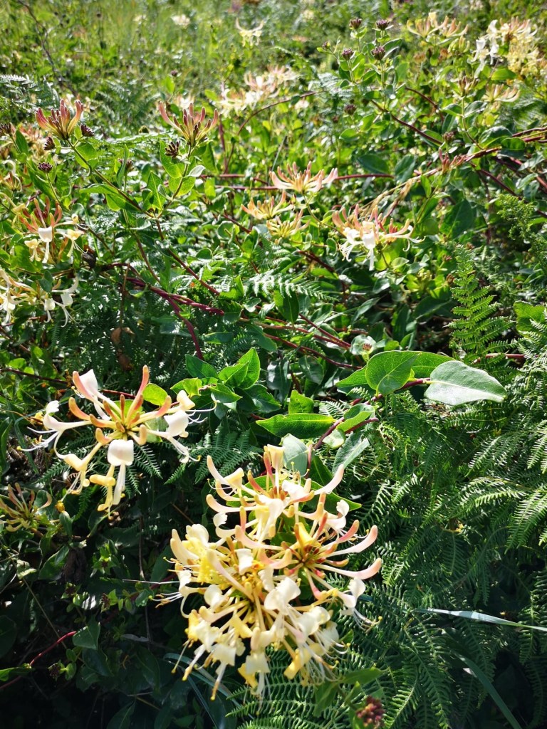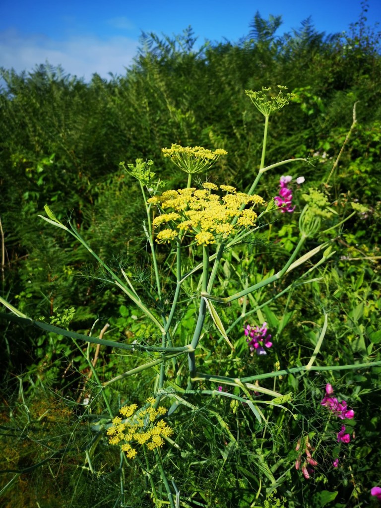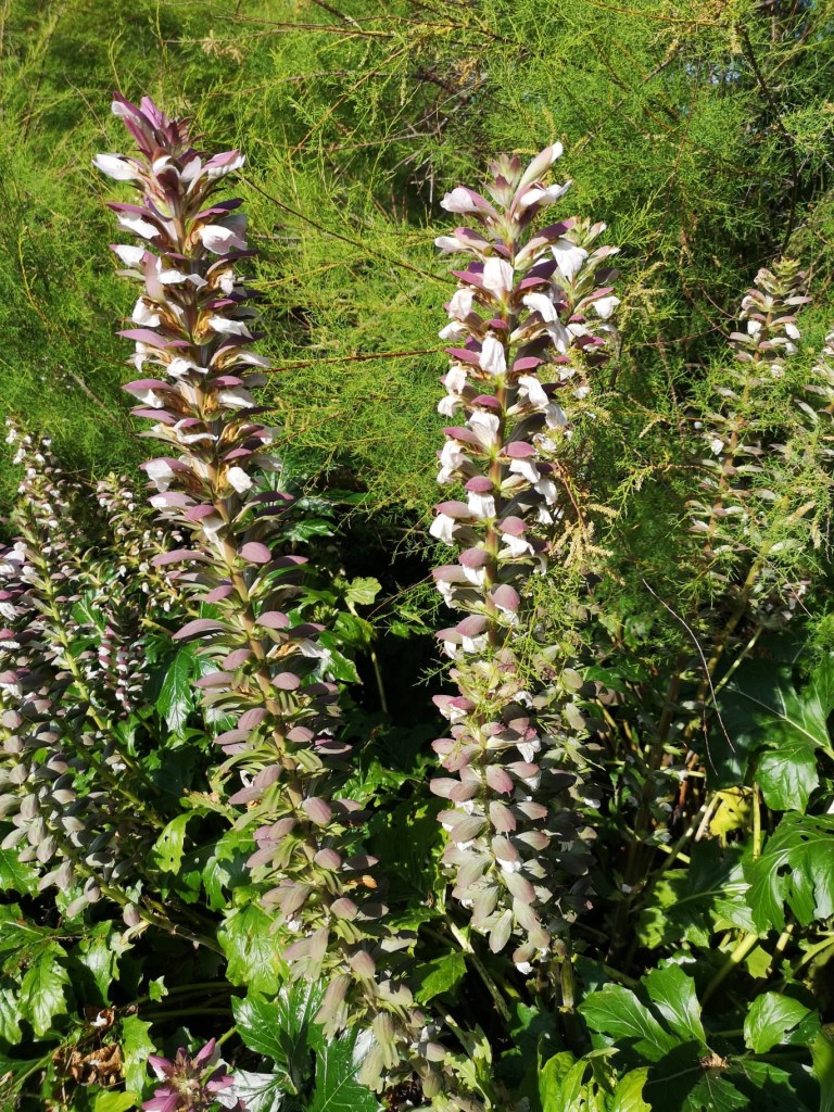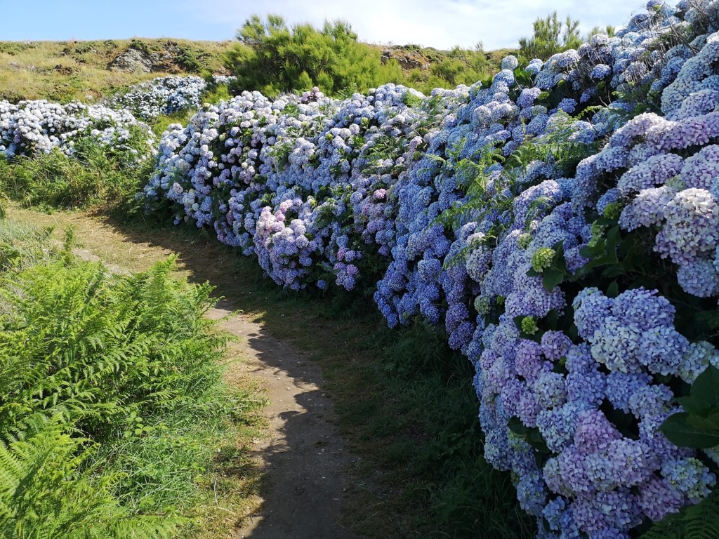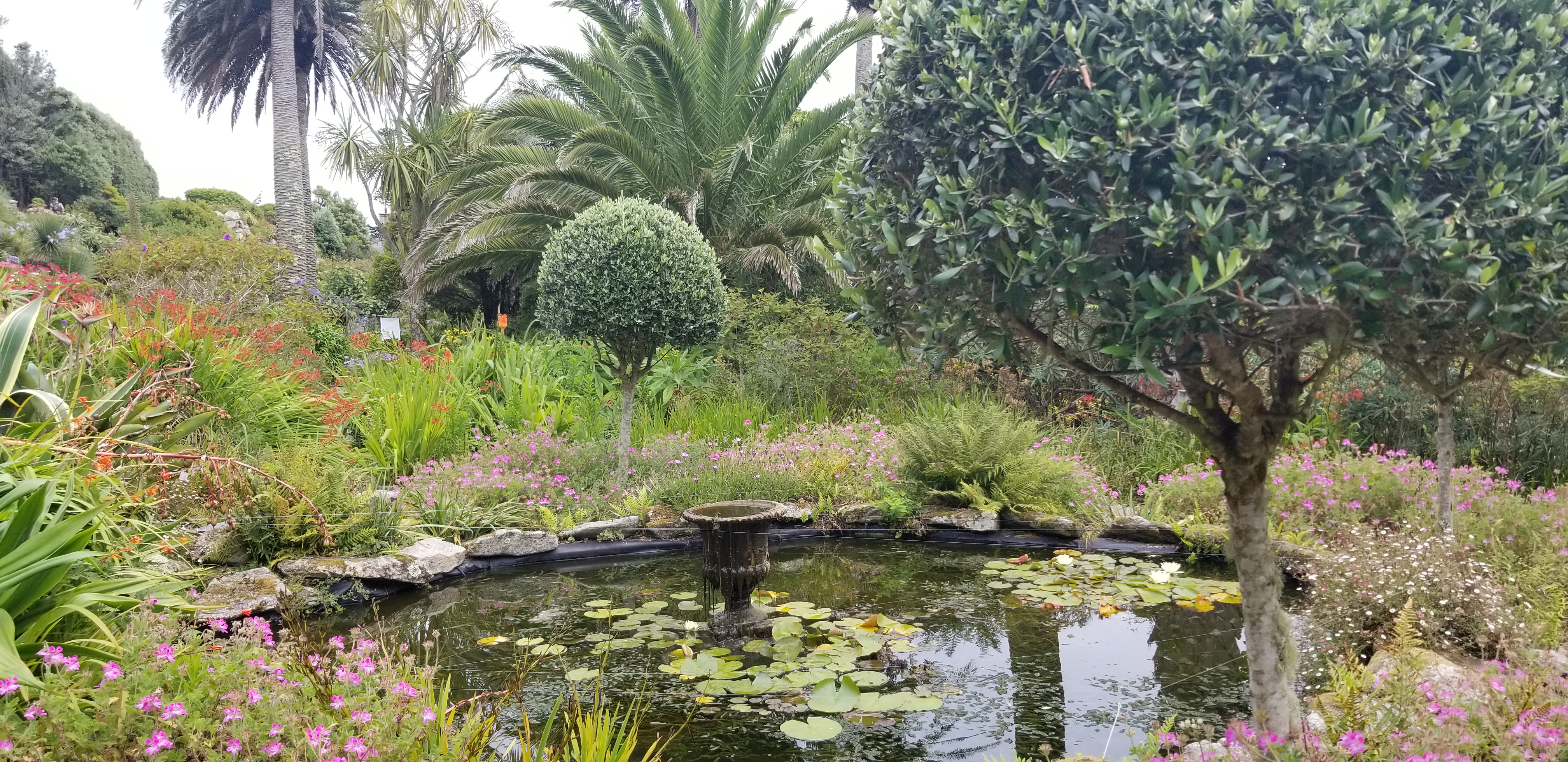 L’île de Tresco abrite un extraordinaire jardin où ont été réunies des milliers de plantes venues de la planète, poussant naturellement entre le 30 ème et le 45 ème parallèle dans les 2 hémisphères. Une patience infinie a permis à des jardiniers inspirés de les re installer dans un jardin au milieu du golf stream et de la lumière du 50 ème parallèle nord. Des allées serpentent d’un banc à un autre, des escaliers de pierre parfois à peine visible au milieu des agapanthes, du fenouil et de géraniums aux proportions de buissons. Les lys sont gigantesques.