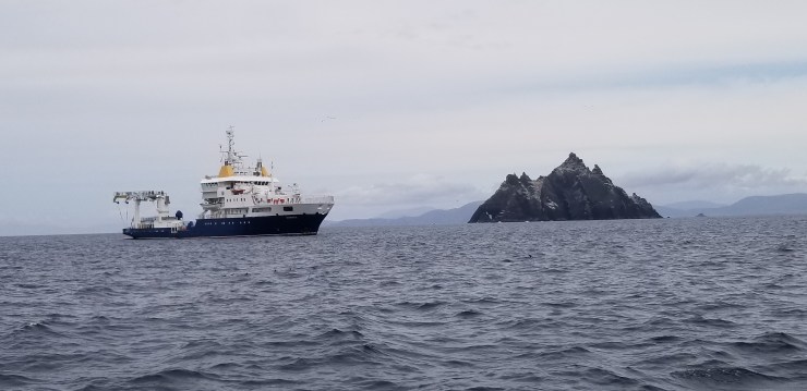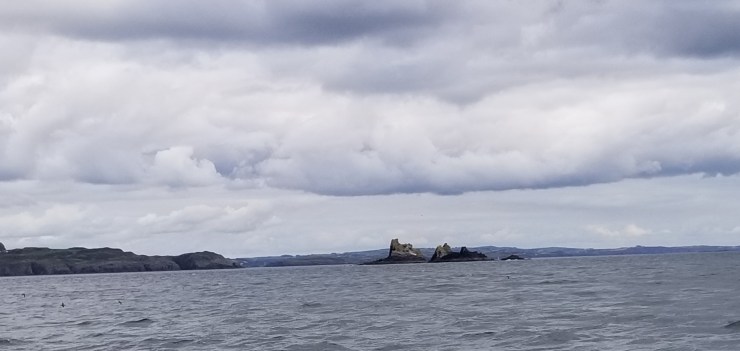Une journée à Kinsale pour se reposer de la traversée depuis la Cornouaille n’a pas été de luxe. La ville est charmante avec ses maisons colorées et une visite à la forteresse du XVIIème siècle qui protégeait la baie nous a dégourdi les jambes. Départ le 19 juillet en larguant les amarres à l’aube pour profiter d’une accalmie, au point de débuter la route au moteur pour sortir de la baie et amorcer la trajectoire vers le nord. Le vent attendu de travers pour établir une allure confortable, s’est en fait levé de face, et il a fallu tirer des bords de près depuis les « Stags », un magnifique groupe de rochers de schistes déchiquetés par la mer…
