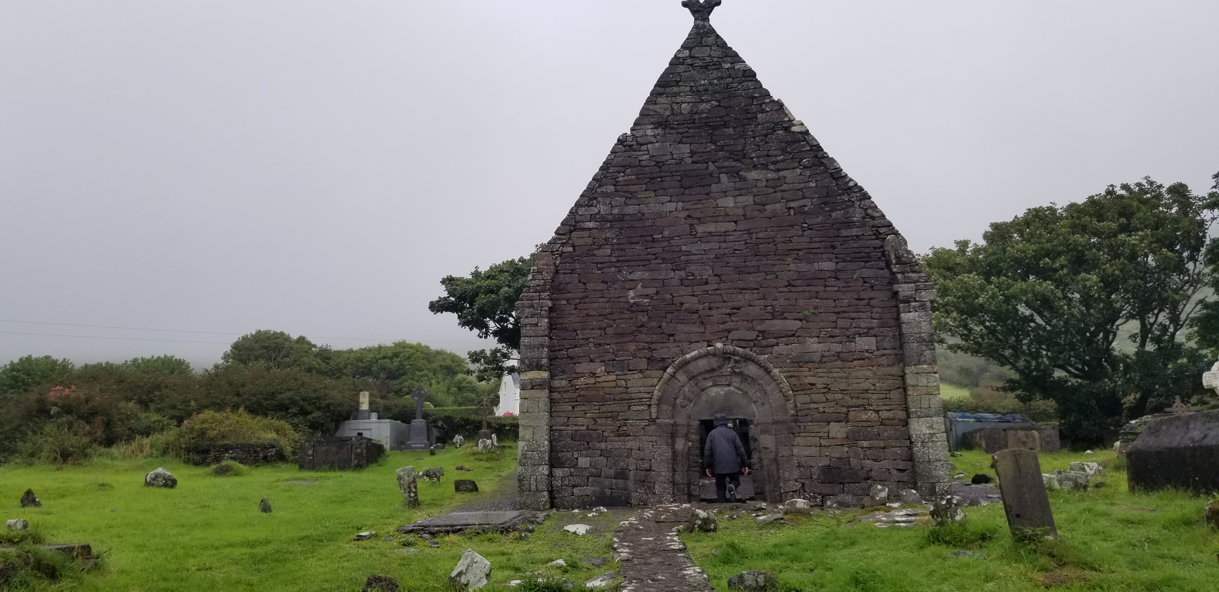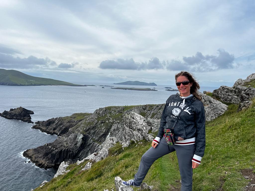 Par chance, une balade en voiture nous est offerte par Laureline et Olivier pour aller déjeuner dans leur maison avec vue sur la baie de Ventry, si toutefois les nuages de pluie se soulèvent. Un petit tour dans la campagne donne à apprécier la beauté des routes étroites entre des haies de fuchsia de Magellan et de crocosmia oranges, lumineux sous la pluie.