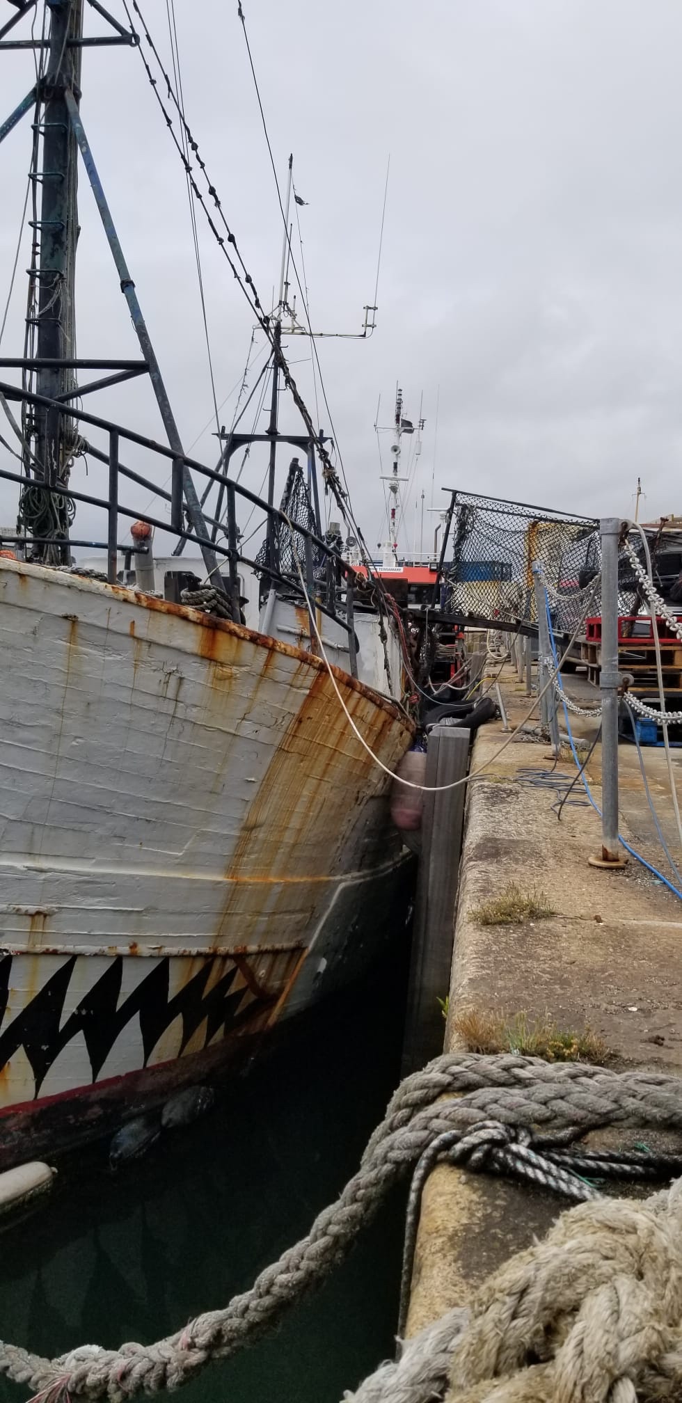 Ce temps suspendu s’est prolongé ce vendredi matin, trop court pour pouvoir gagner un autre abri sur plus au Sud. Des bateaux de pêche sont venus cette nuit pour décharger leurs poissons au port, laissant ronronner leurs gros moteurs des heures durant