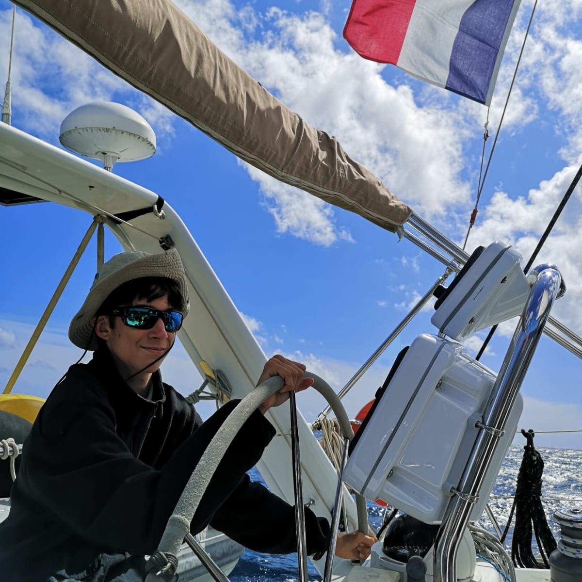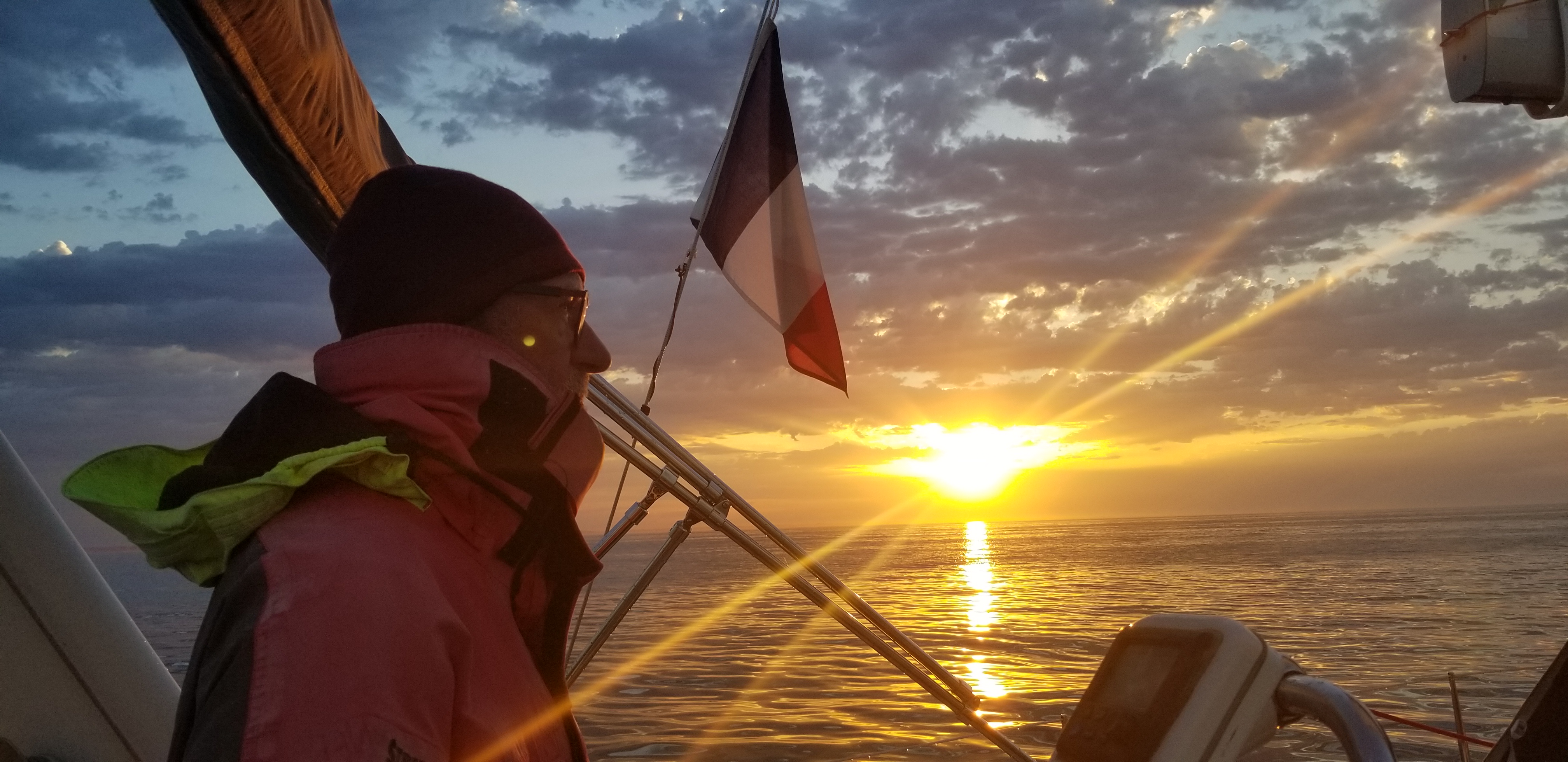 Bien installé sur son bouchin, le bateau s’est très bien comporté, et le pilote automatique s’en est bien sorti. Mais impossible de cuisiner dans de telles conditions, Armand a confectionné des sandwiches et les quarts se sont relayés mécaniquement.