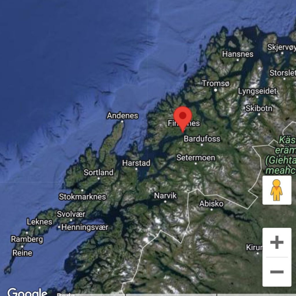 21 juin : position à 8h30 : Lat+69.195700 Lon+17.956200