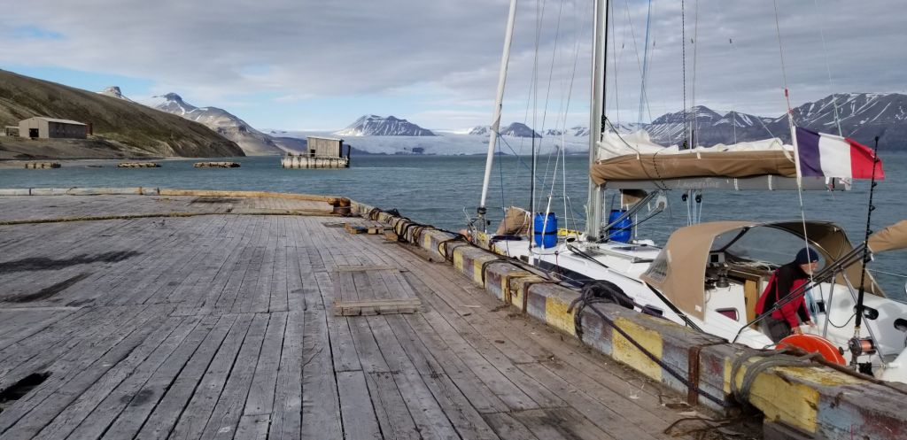 Un ponton d’un autre âge, rafistolé de bric et de broc et bardé de vieux pneus, permet d’accoster entre les rafales, un peu calmées à son approche. Deux couples de sternes arctiques veillent jalousement sur l’embarcadère et kek kek kek kek kek que je pique pique pique la tête, elles en ont après Marc, descendu fixer les amarres.