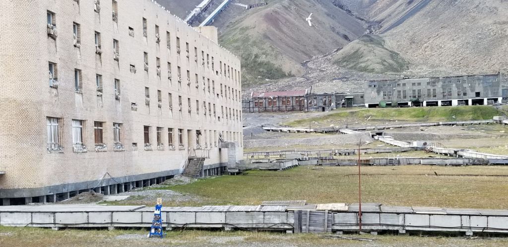 Une ville a été batie au pied d’une montagne remplie de charbon et d’un glacier tout blanc, qui se voulait vitrine des bienfaits du communisme : école, centre culturel, cinéma, salle de danse, piscine, cantine, hôtel, ateliers mécaniques, hôpital.