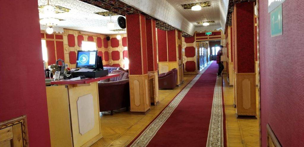 Un jeune homme souriant se matérialise alors, au pied de la grande grue rouillée du débarcadère, pour nous proposer l’acceuil de son hôtel restaurant et nous y emmener en bus. Il est 20 heures, et c’est bien volontiers que l’offre est acceptée. Repas de plats russes, arrosé d’une bière à l’hibiscus brassée au Svalbard à Barentsburg, l’autre ville minière Russe.