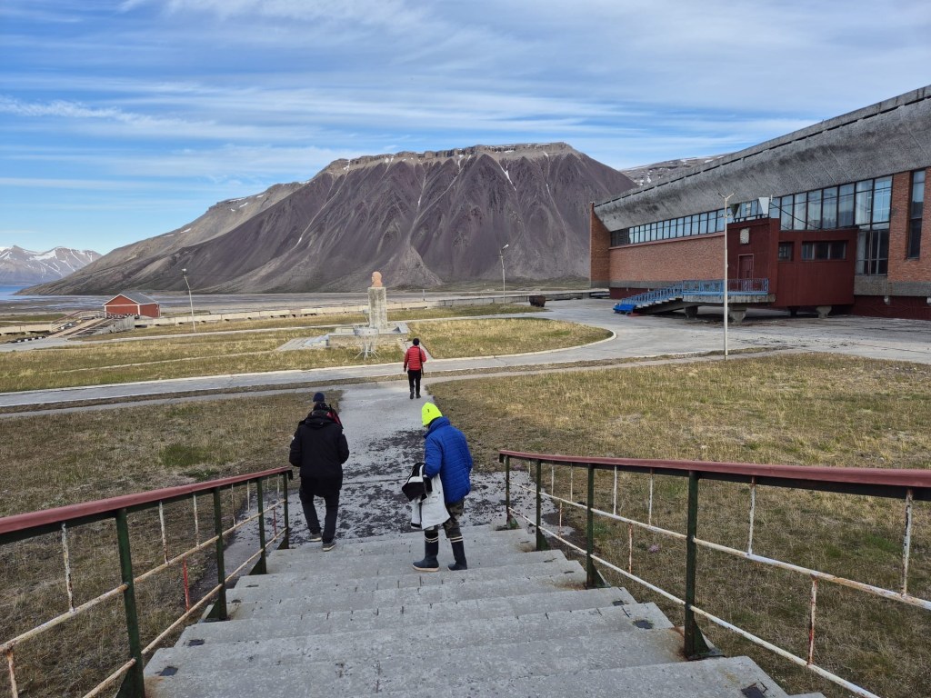 Tout est là, sous le regard de la statue de Lénine, mais les fers à béton gonflent sous la rouille, les planchers se décrochent, le piano a perdu sa voix, les rennes broutent l’esplanade. Kitiwek Kitiwek, Kitiwek ! la ville minière est aujourd’hui une attraction touristique ou défilent 100 personnes par jour, sauf à se pointer à une heure improbable, bien sûr.