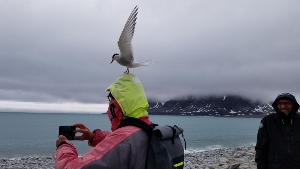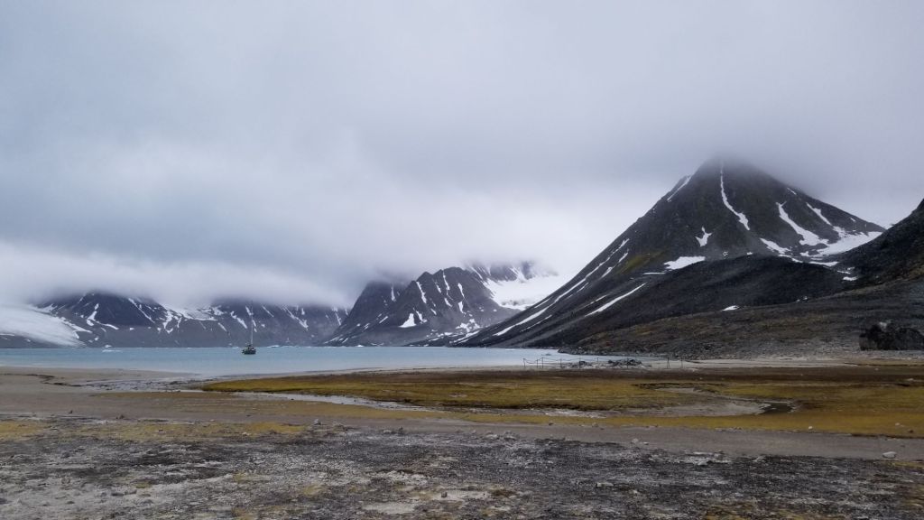 Après un petit tour auprès des glaces bleues, La Laureline a jeté l’ancre pour quelques heures, le temps de fouler la plage des baleiniers. Des sternes arctiques y sont installées qui n’appréceint que modérément les visiteurs décidément trop nombreux, quelques mergules et des goélands ivoires montrent le bout de leurs ailes, mais nulle part on n’apercoit de phoques, dont plusieurs espèces étaient visibles en 2016. Et pas la queue d’un ours non plus.