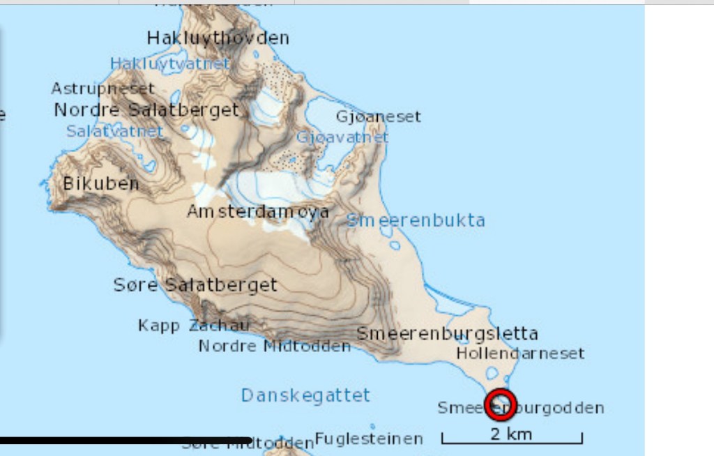 Position le 13 juillet à Smeerenburg, île d’Amsterdam: 79°44’N 10°59’E
