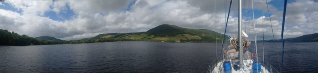 Ambiance bucolique, le monstre reste caché, et les éclusiers se concertent pour coordonner le passage des sas, toujours montants jusqu’au Loch Ness . Au début du parcours, le bateau circule dans la campagne, au milieu des joggeurs et des cyclistes. Mais 25 à 30 nœuds de face quand même !