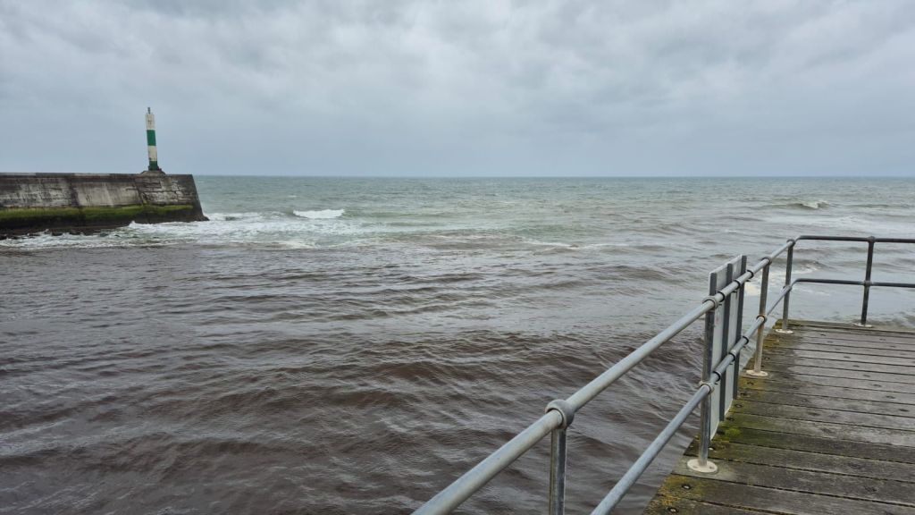D’un côté, du vent fort de sud ouest et des vagues… une navigation désagréable en perspectice ; de l’autre, un aber protégé derrière un estran et des digues, qui offre l’abri sympathique d’une belle ville du Pays de Galle. Le petit coefficient de marée autorise le passage sur l’estran, avec 1,35 m à marée basse, gérable quille relevée. Le choix est vite fait ! mais quand les vents soufflerons (un peu moins), nous repartirons