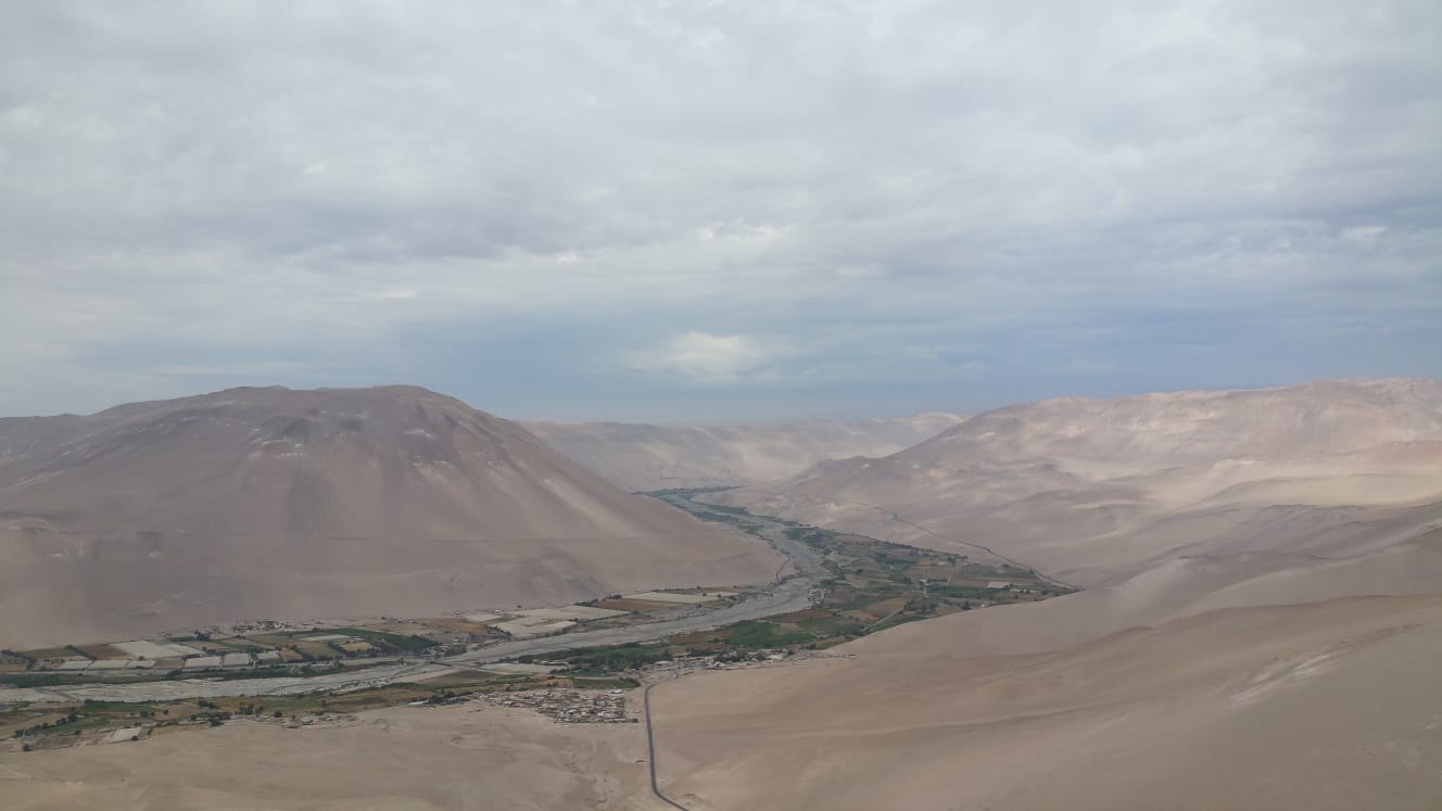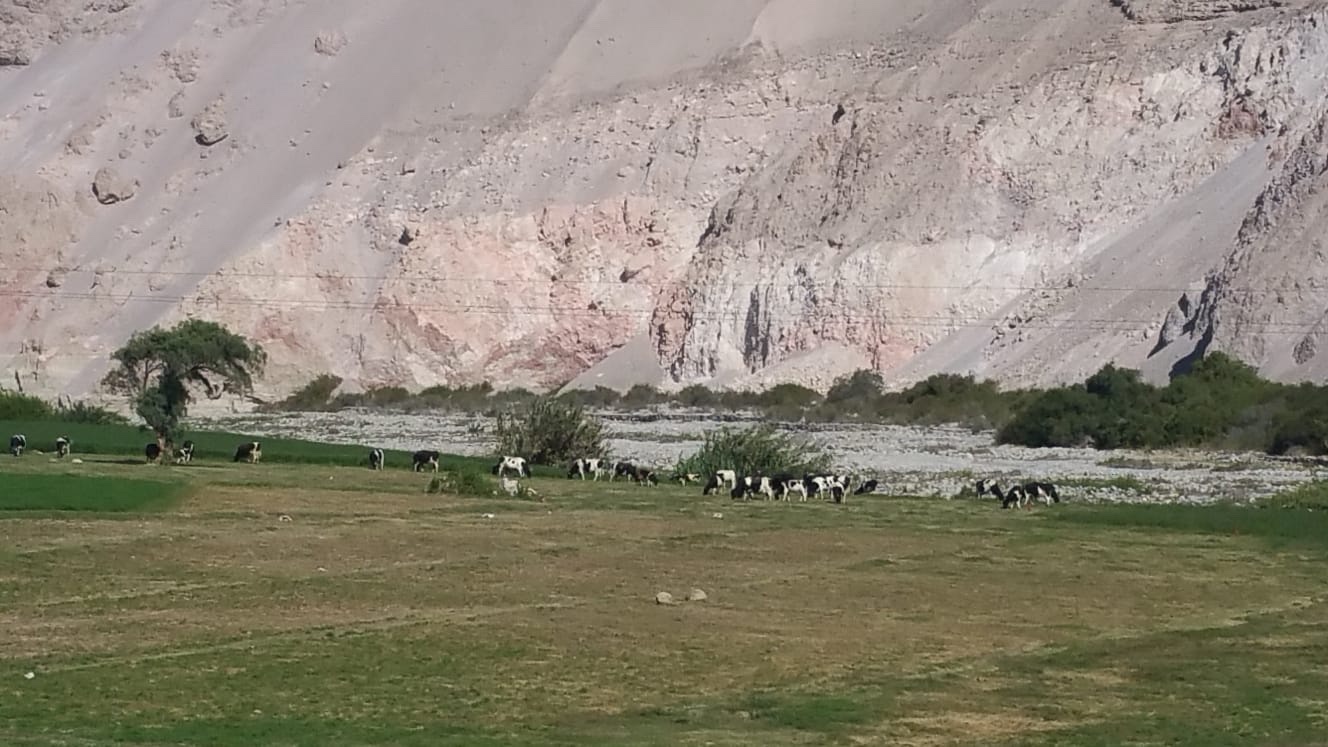 Vallée de la Lluta : pâturages au ras des falaises desséchéesLa température ne descend jamais sous 8°C et n’excède pas 25°C tout au long de l’année. Les tomates produisent en continu, et des parcelles de maïs en fleur côtoient des parcelles de maïs mûrs. La culture semble très peu mécanisée et les parcelles restent de taille modeste. Un paradis pour les oiseaux qui chantent à qui mieux mieux !Jusqu’au bout de leurs parcours, les vallées fluviales représentent une source de vie courant d’est en ouest au sein du désert d’Atacama qui se prolonge jusqu’à hauteur de Antofagasta.En l’espace de quelques kilomètres les paysages changent profondément en arrivant sur la pre-puna