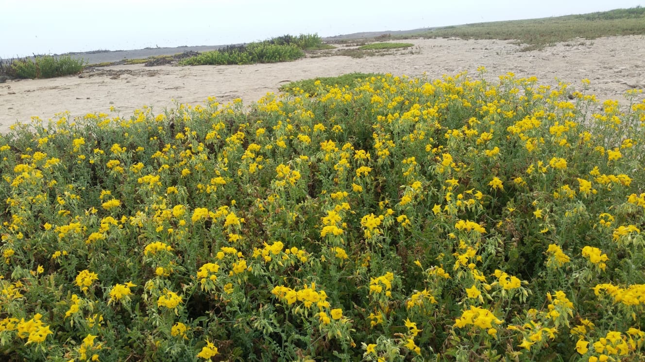 Arica où nous sommes arrivés en bus hier pour une escapade avec BirdsChile : les dunes proches de l’embouchure de la rivière Lluta. Les fortes pluies qui tombent en été sur l’Altiplano y déboulent chargées de bois flotté. On y trouve des morceaux de cactus candélabres centenaires et des troncs d’arbres. Tous ces bois flottés vont apporter à la mer un compost bénéfique pour la vie marineDes crabes profitent de cet abri providentielEmbouchure de la Lluta à Arica, la ville où il pleut le moins au monde…l’eau n’est pas loin cependant, descendant de l’Altiplano elle ressort ici en marécage fertile où nichent de nombreux oiseaux. Ici: un plan de tomates sauvages. Par hybridation entre cette tomate robuste et une autre plus charnue, une variété très productive et adaptée à la région a été obtenue qui produit dans la région de Arica 4 récoltes par anLa Lluta entre 2 pluies en Altiplano. Les oiseaux migrateurs y trouvent de l’eau douce et de quoi bien se nourrir avant de monter chercher les vents d’altitude qui leur permettent d’aller jusqu’au CanadaL’embouchure de la Lluta et dans le fond le port de Arica