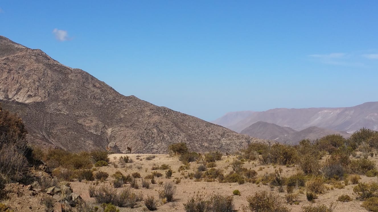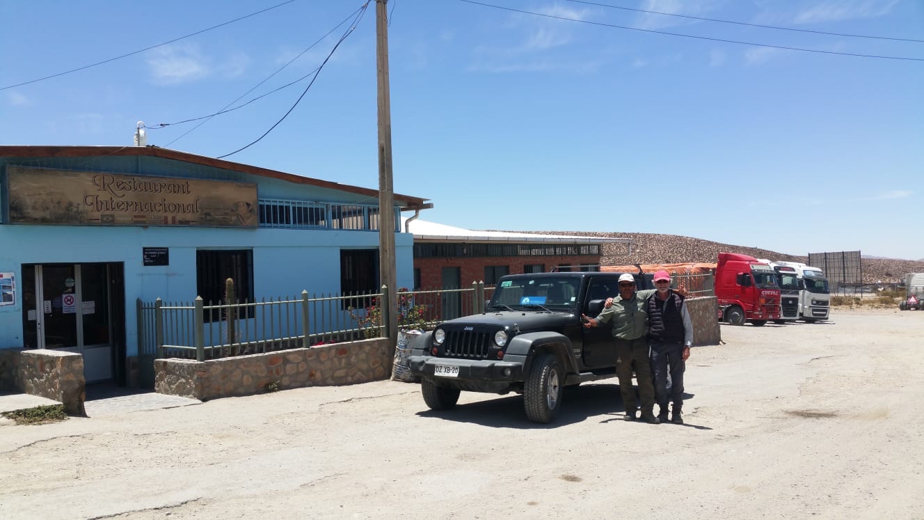 Retour sur les terres séminaire désertiques sous la barre des 3000 m : rencontre avec des guanacos qui ne montent jamais au dessus de cette altitude et savent néanmoins se déplacer sur des pentes raides et meubles pour trouver un peu d’eauDe petits oiseaux font leurs nid à l’abri des renards entre les branches de cactus candélabre. Ils sont garnis de laine de guanacos pour plus de confortSur le chemin du retour l’oasis de Socoroma apparaît au creux de la montagnePas besoin de monter sur les hauts plateaux pour élever des alpagas !Retour non par une vallée mais par le « camino del diablo ». Un ruban d’asphalte collé sur la surface immuable du désert. Le paysage reste inchangé depuis le temps des dinosaures qui est y ont laissé des empruntés. La surface est de sable tassé sous laquelle les pelleteuses ont dégagé un matériaux blanc fait de diatomées . Ces dunes résultent du soulèvement du fond de la mer par la subduction de la plaque du fond du Pacifique. C’est la raison pour laquelle les montagnes sont plus hautes au bord de la mer, pour se prolonger vers l’intérieur par un plateau inclinéRestaurant International : au milieu du désert il est possible de trouver des restaurants pour les routiers. Il suffit d’un forage bien placé pour avoir de l’eau et d’une surface suffisamment grande pour faire un parking pour les camions.