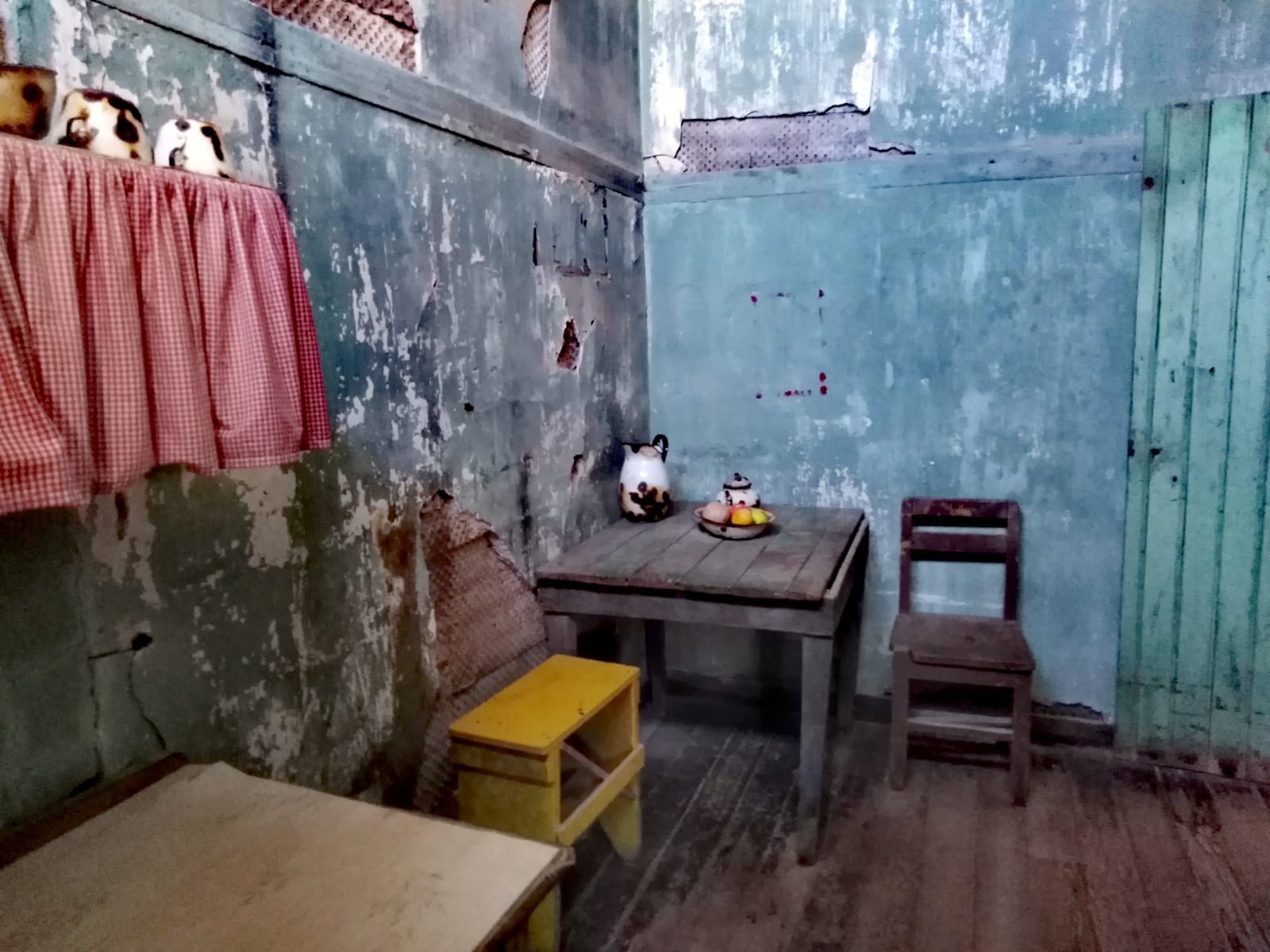 Désertée du jour au lendemain par ses âmes tourmentées par plusieurs décennies de labeurs, l’ambiance y est lourde de cette école où le planché grinçant rappel les rires pleurs des enfants. Toute cette ville à été conçue pour que personne n’en sorte:une piscine, un théâtre où résonnent encore les récits d’acteurs et actrices et ses maisons particulièrement délabrées offrent une matière qui rappel des peintures abstraites.