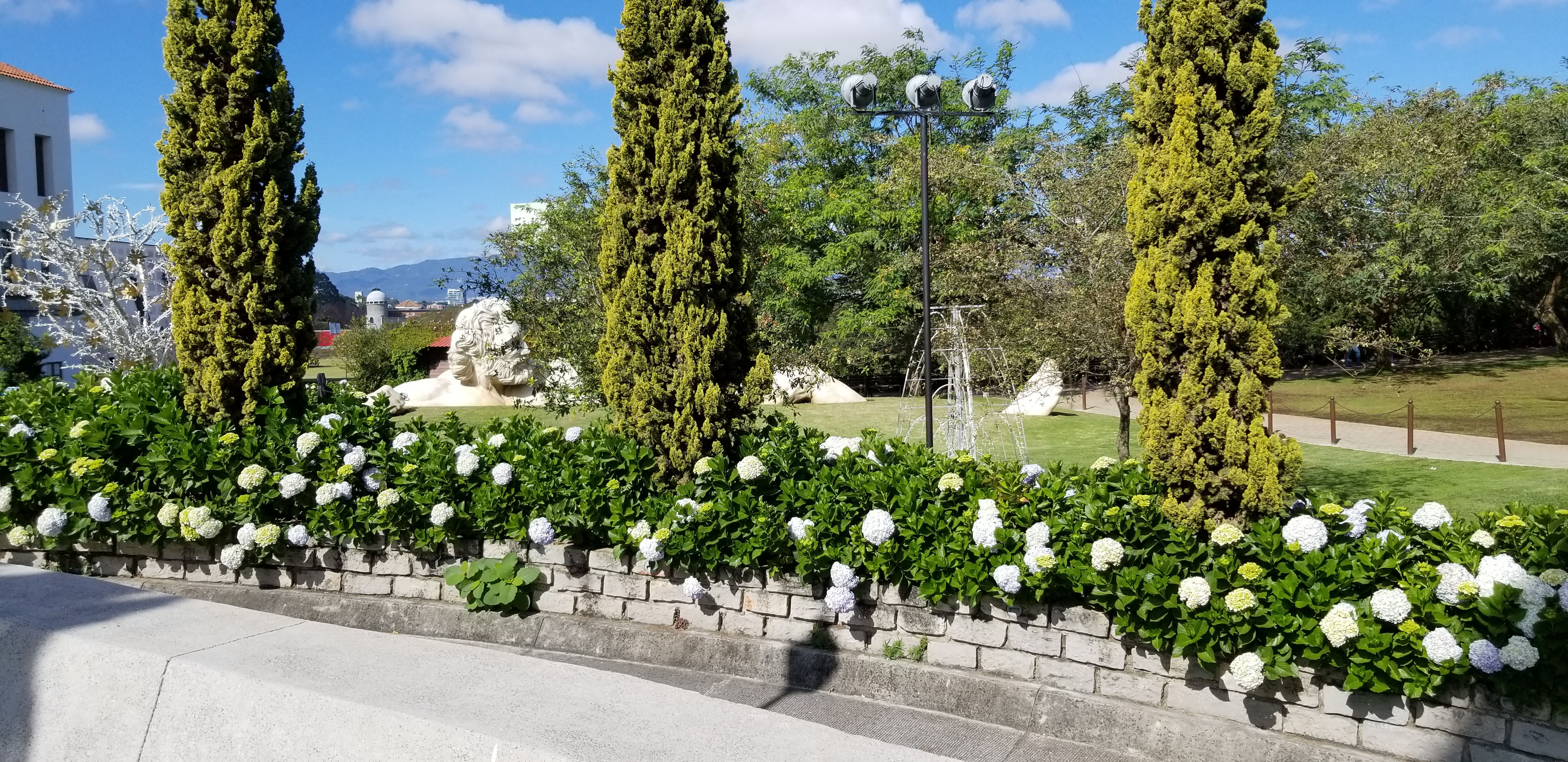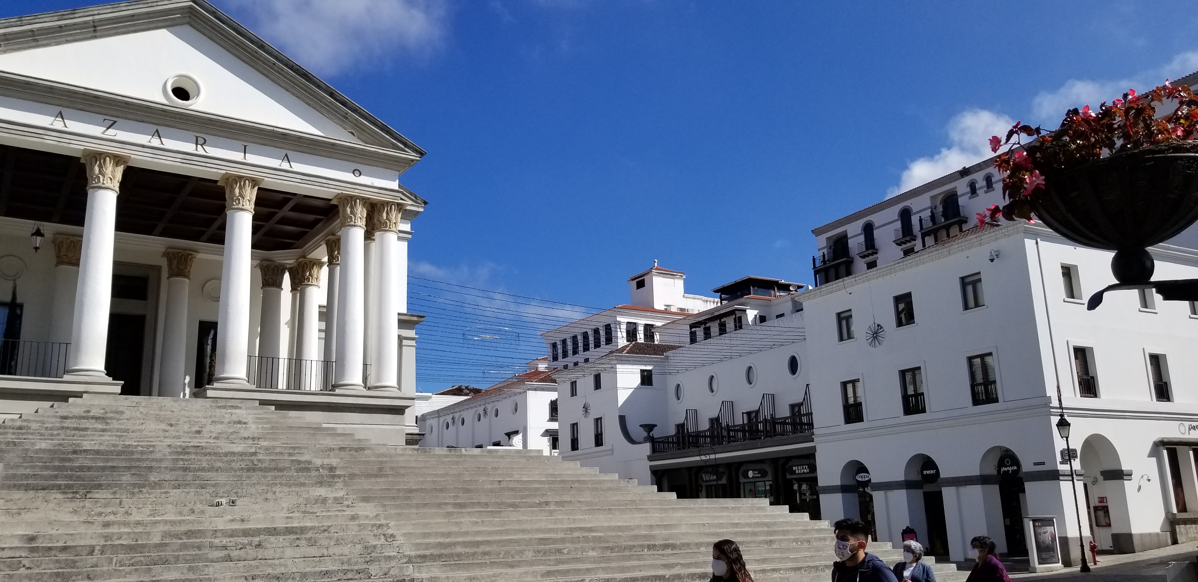 Le quartier alentour de notre hôtel, en zone 16, est récent mais construit avec beaucoup d’élégance sur un modèle néo-colonial. Ce quartier de Guatemala city est dénommé « Cayala ». Tout de blanc vêtu. Boutiques chics et restaurants ouverts où toutes les précautions sont prises pour éviter la propagation virale .