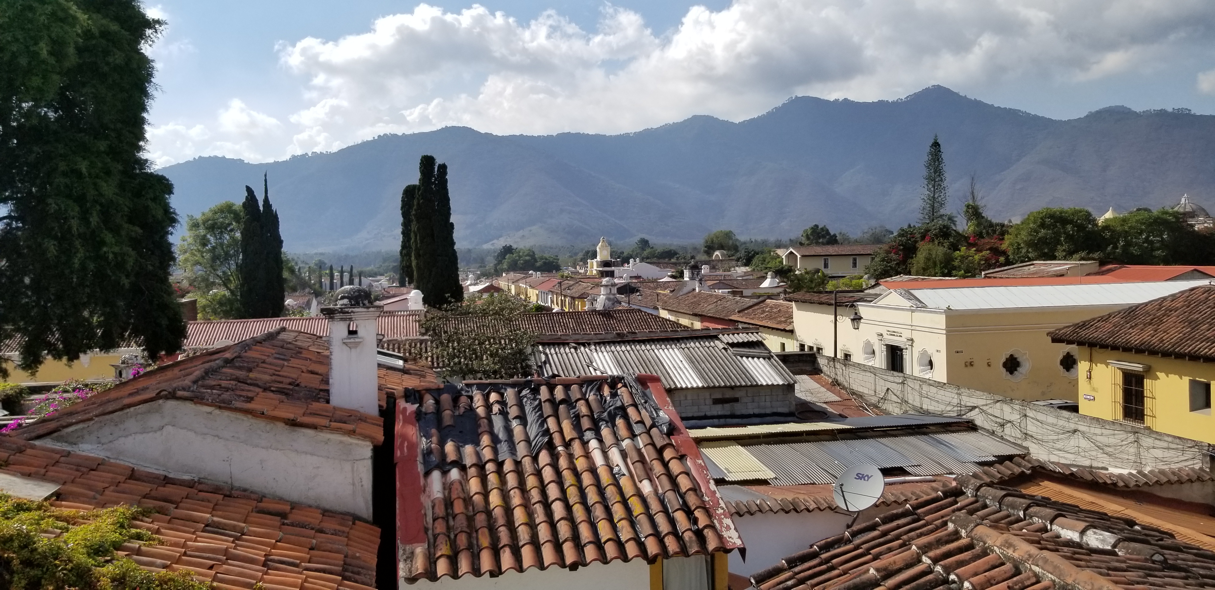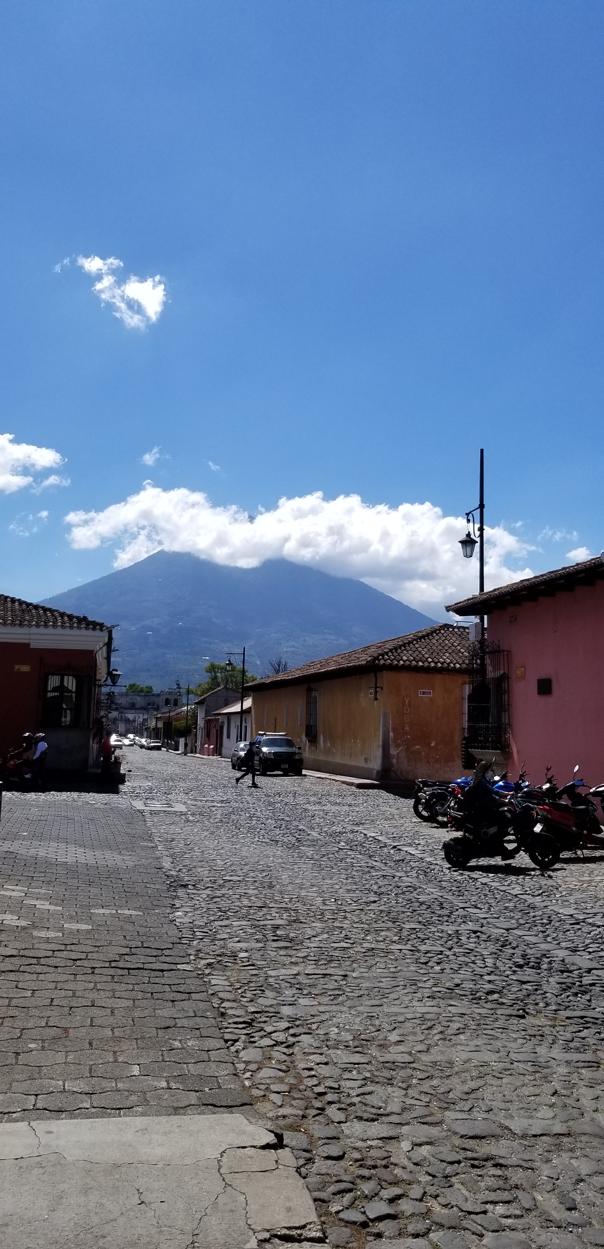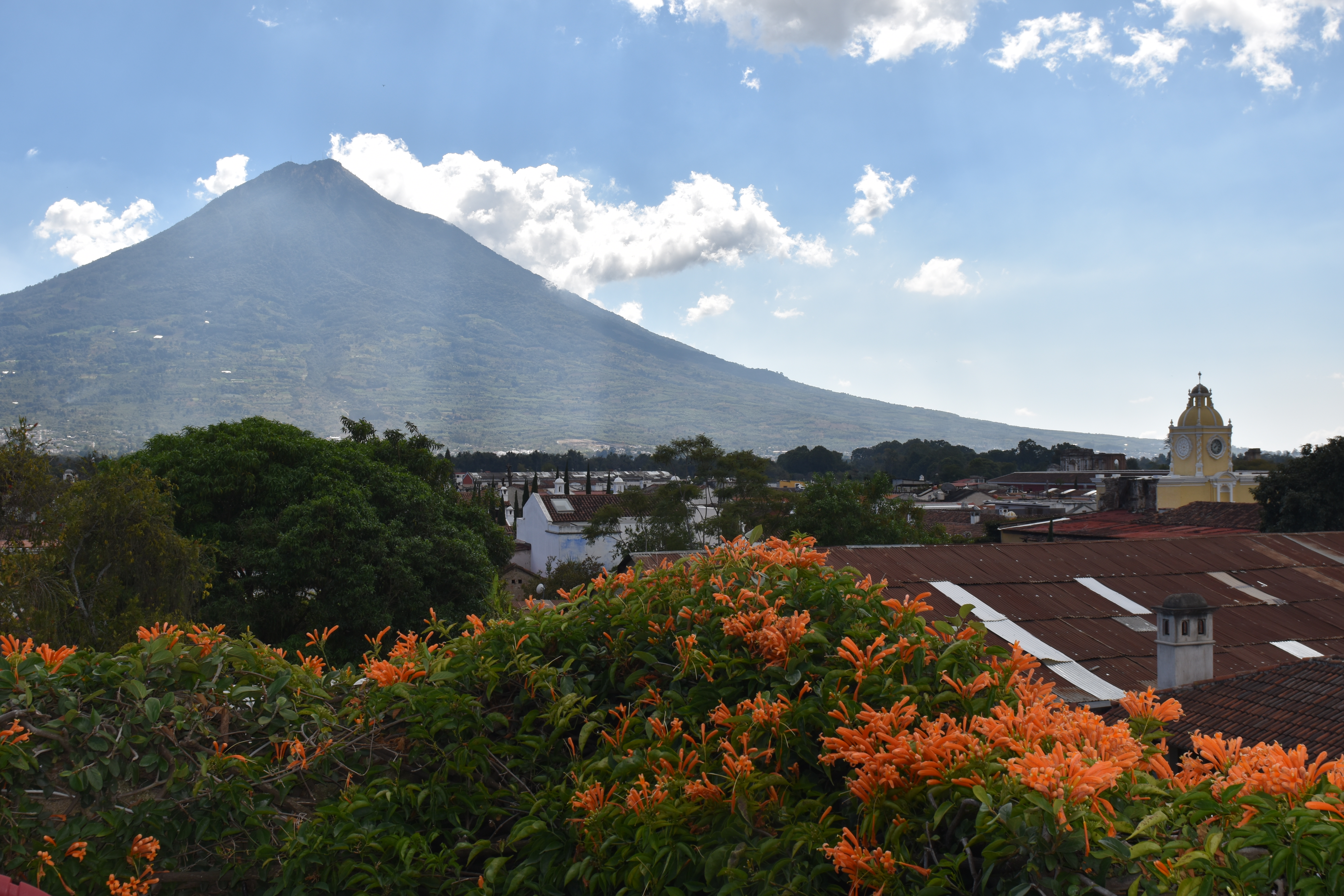 Voilà qui nous a laissé un peu de temps pour aller faire un tour à Antigua. La réception nous a mis en relation avec une agence de voyage qui organise notre séjour et nous retient un hôtel de charme dans cette vieille ville classée au patrimoine de l’UNESCO et qui a été la capitale du Guatemala jusqu’à ce qu’elle soit en partie détruite par une éruption volcanique en 1773.