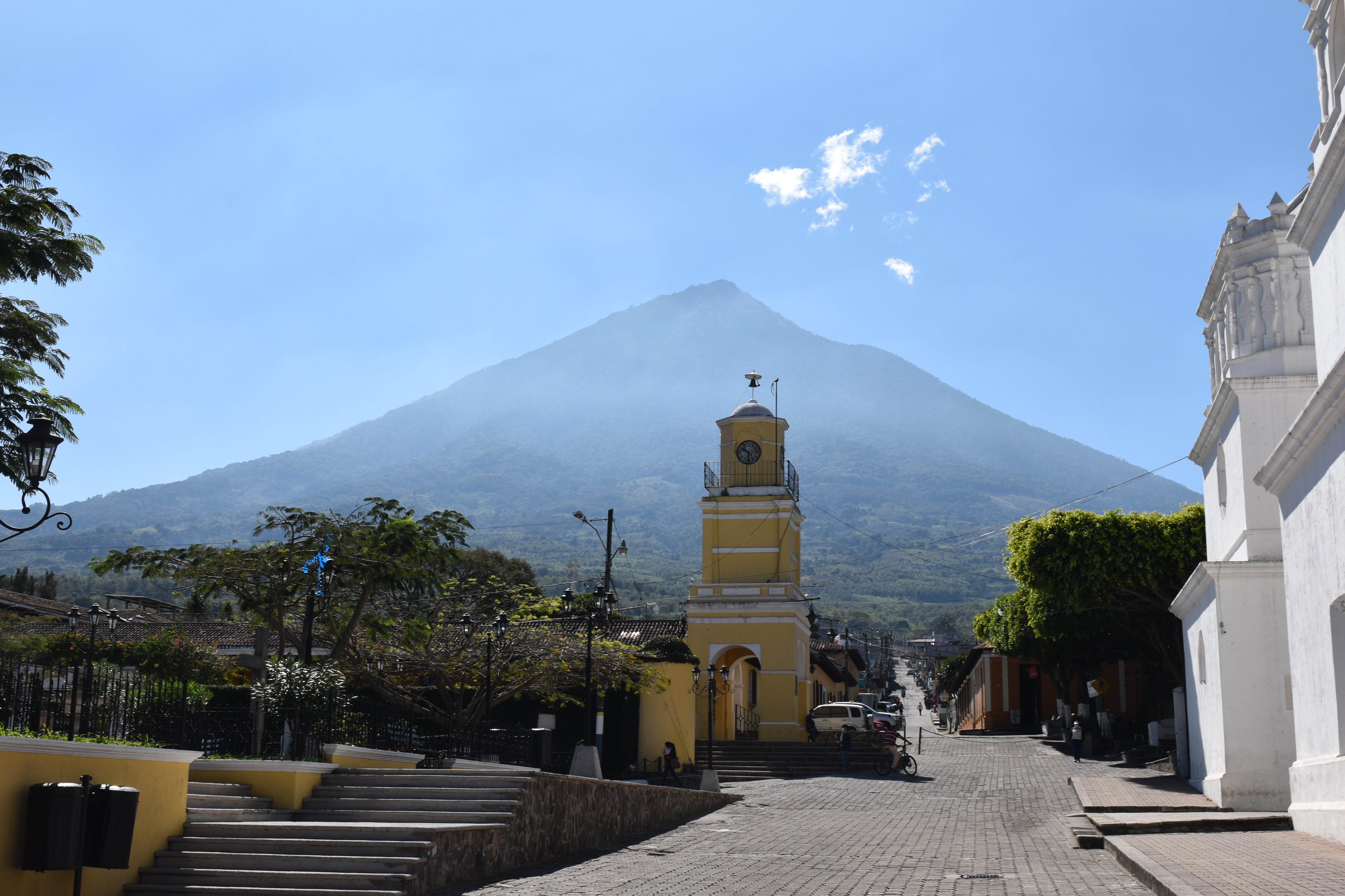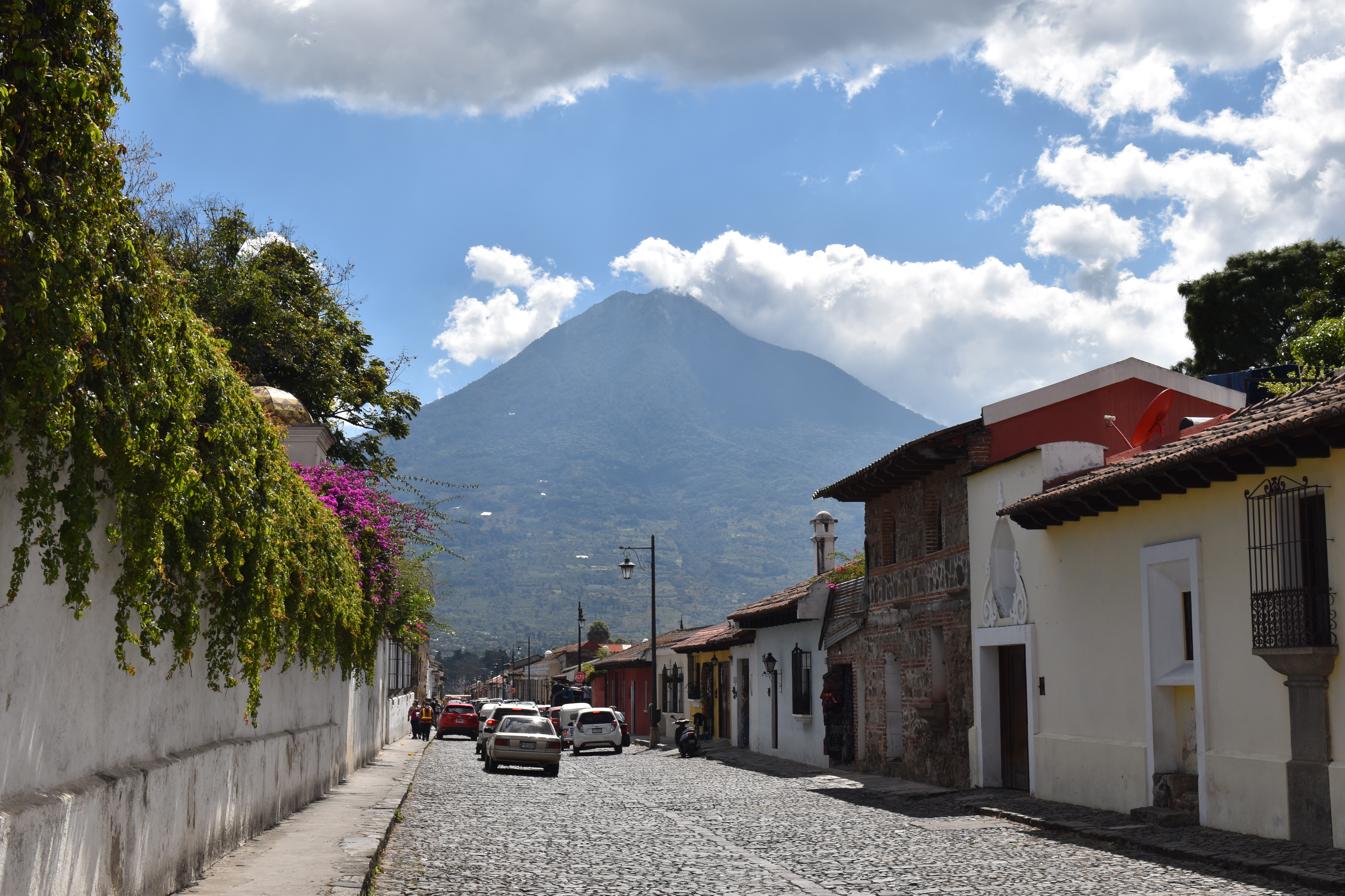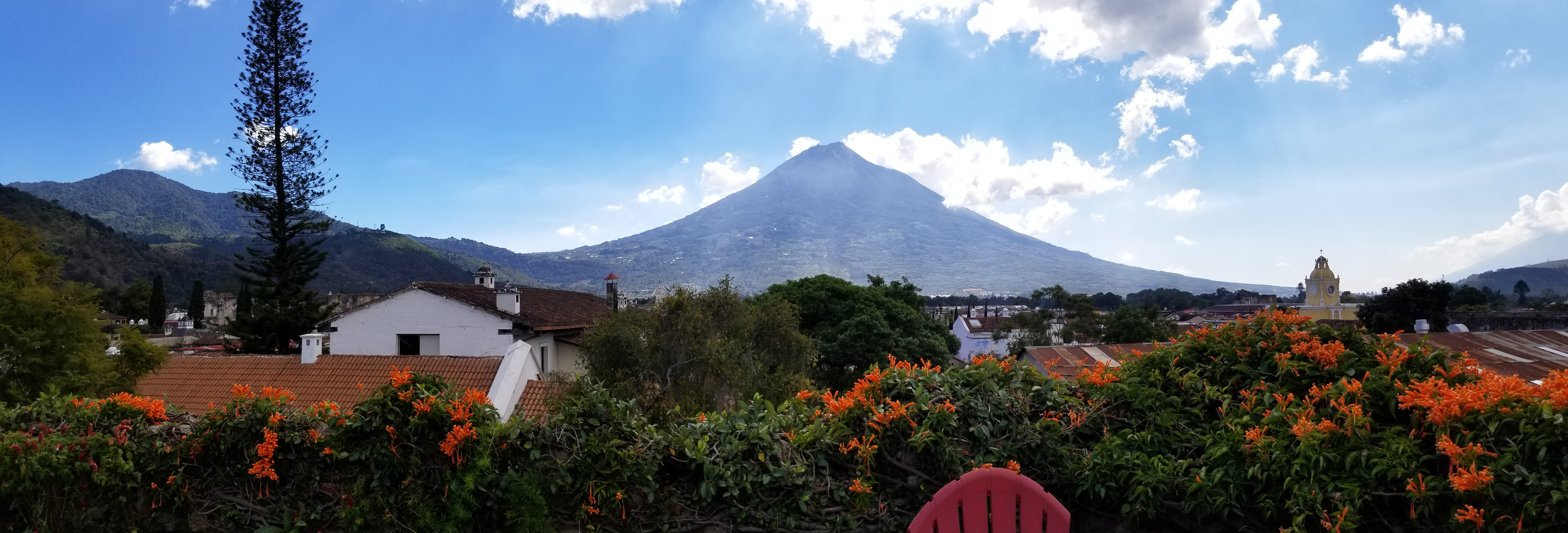 Voilà qui nous a laissé un peu de temps pour aller faire un tour à Antigua. La réception nous a mis en relation avec une agence de voyage qui organise notre séjour et nous retient un hôtel de charme dans cette vieille ville classée au patrimoine de l’UNESCO et qui a été la capitale du Guatemala jusqu’à ce qu’elle soit en partie détruite par une éruption volcanique en 1773.