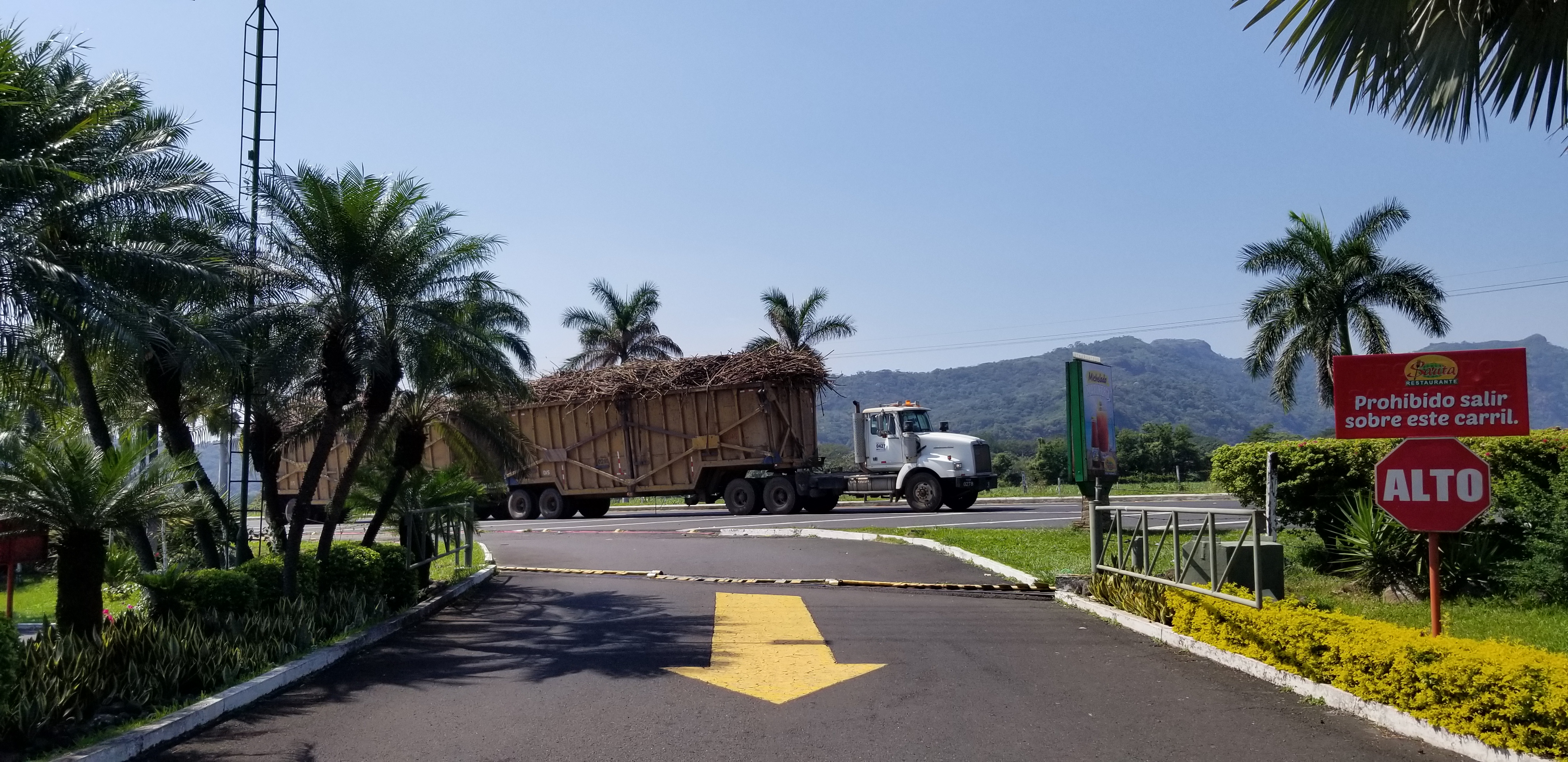 La route nous mène en direction du Pacifique. Sur l’autre flanc des volcans, des champs de canne à sucre s’étendent sur de grandes surfaces, au milieu des ruines et coulées de lave de l’éruption terrible qui a rasé des villages. emporté des ponts et tué des centaines de personnes en 2018.