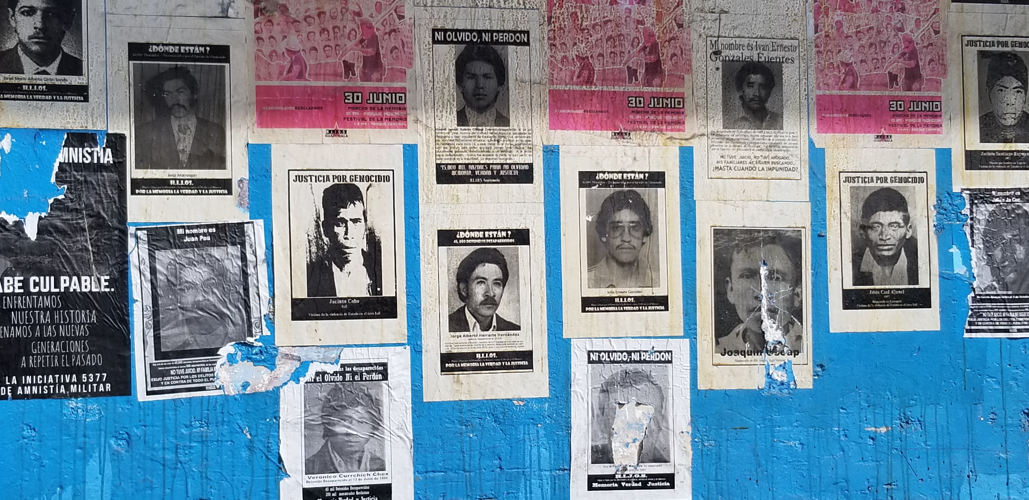 Dans les rues des affiches rappellent les meurtres et disparitions des années 80 90, le génocide opéré par l’armée lors de la dernière dictature soutenue par les USA.