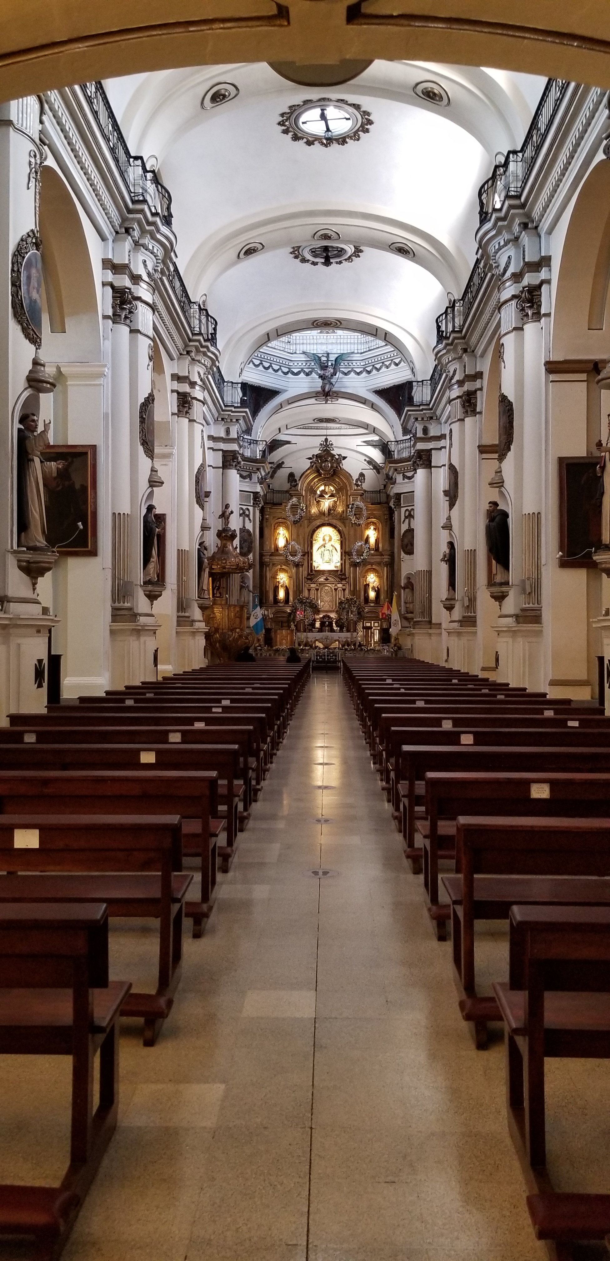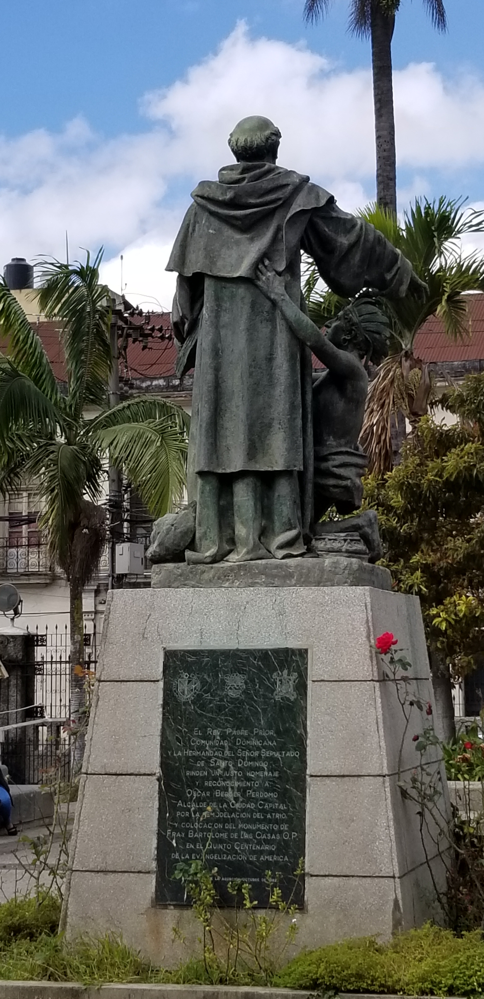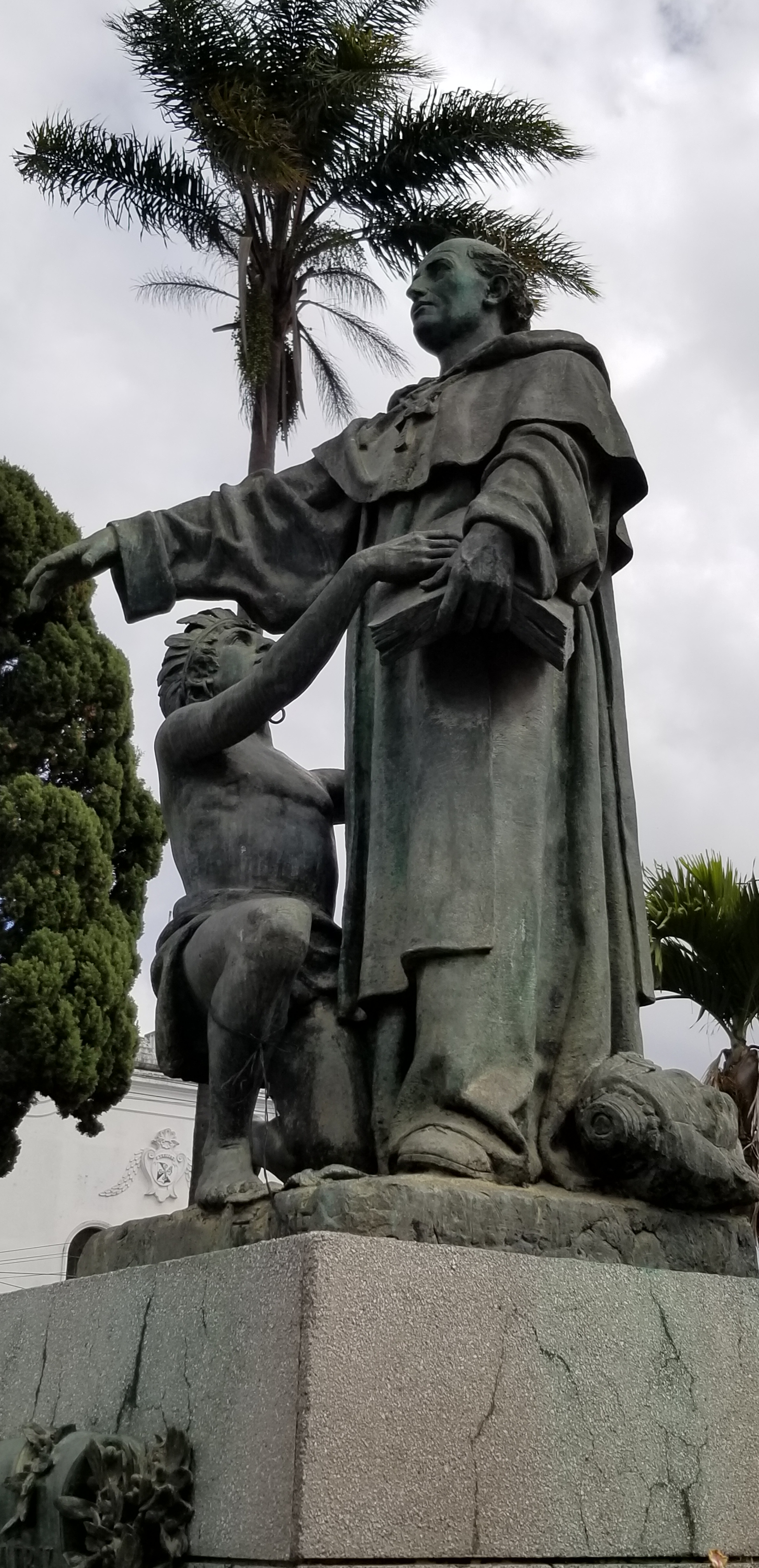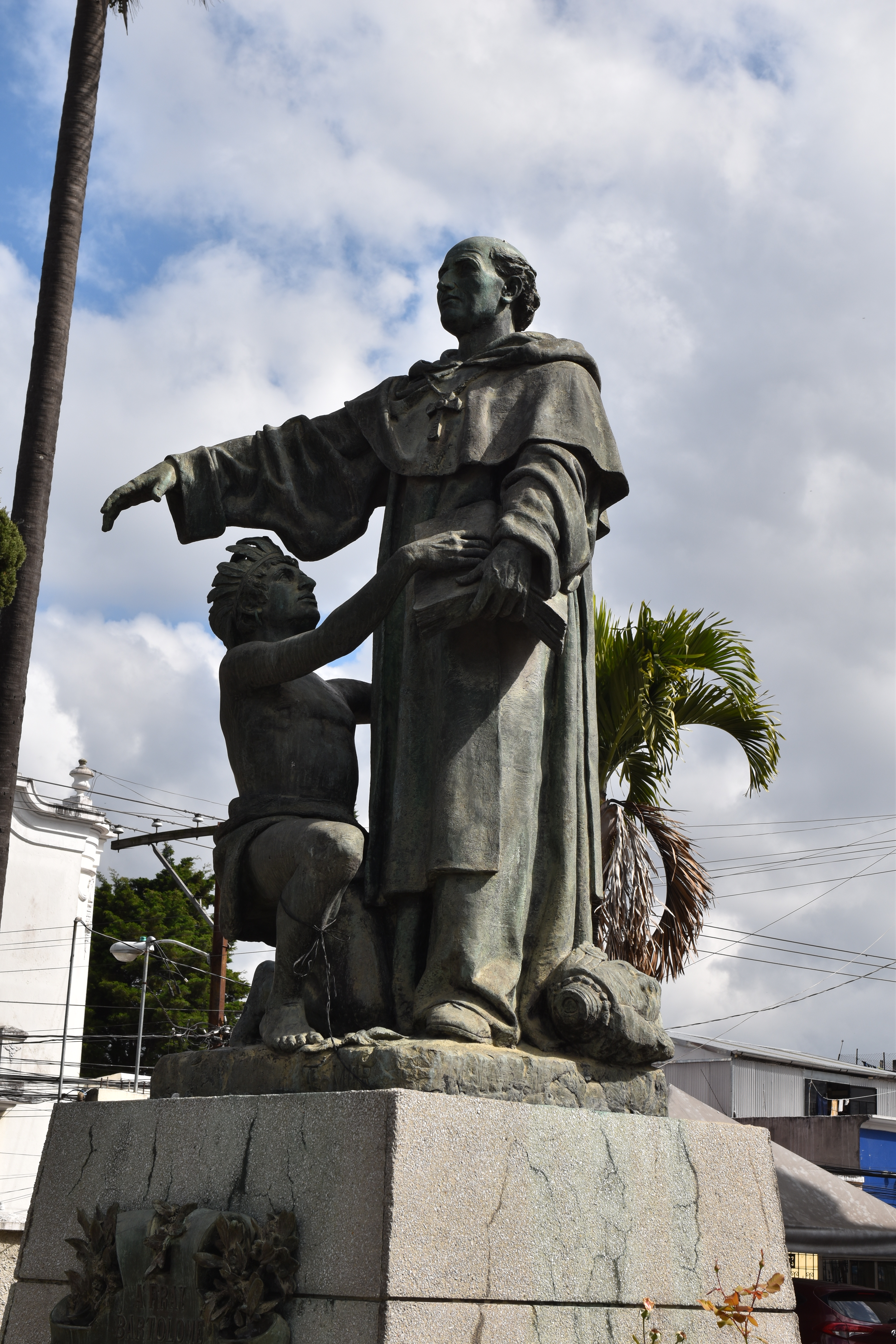 Un peu plus loin, la basilique reconstruite par les Dominicains lorsqu’ils ont dû quitter Antigua. Une statue devant la basilique rappelle le rôle des Dominicains non seulement pour l’évangélisation des indiens mais aussi pour leur domination : ils ont convaincu le roi maya de Coban de les accompagner en Espagne pour qu’il puisse se rendre compte de la supériorité de la puissance espagnole et ainsi décider d’arrêter la lutte.