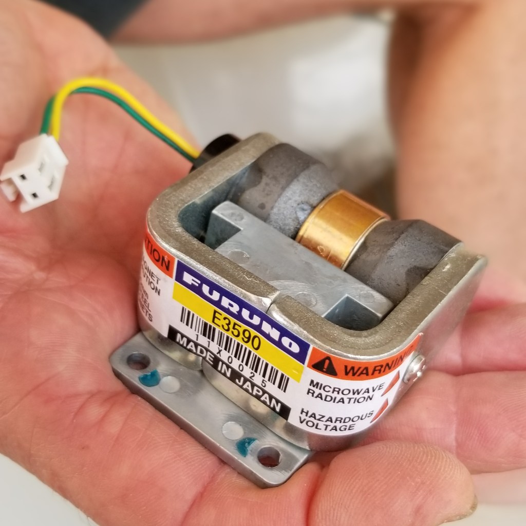 Manu avait diagnostiqué une panne du magnétron, émetteur de micro ondes très pénétrantes dont l’écho renseigne sur la présence de « cibles » , à éviter en l’occurrence. L’écho, c’est son truc, mais l’électronique, pas encore.