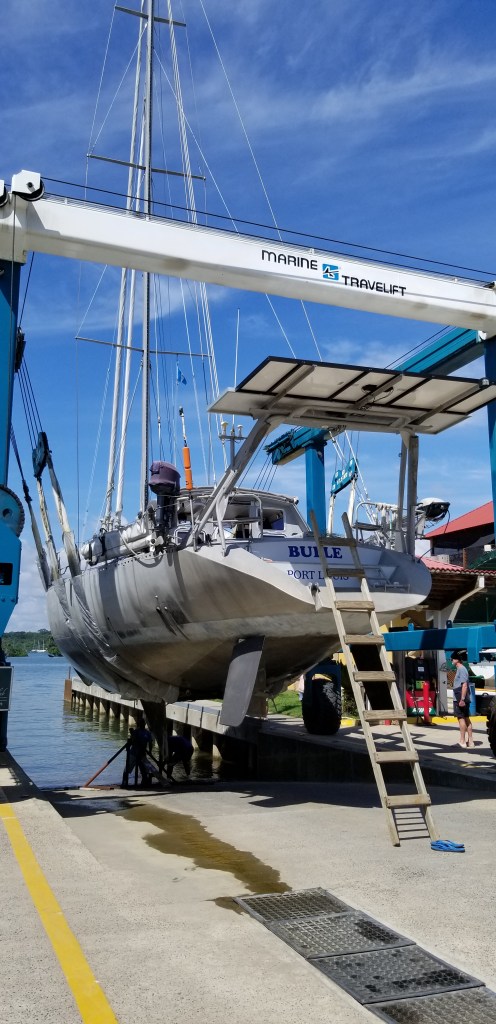 En mars dernier, les frontières se sont fermées sans préavis. En cas d’épidémie , l’Étranger est toujours suspect. Bon nombres de bateaux se sont ainsi trouvés exclus, sans même la possibilité de se ravitailler. Karin s’est investie pour négocier pour chacun d’entre-eux le droit de venir se réfugier dans son chantier naval avant la saison des cyclones. Résultat : le chantier est plein comme un œuf, mais contrairement à ce que nous avons vu en arrivant avant le confinement, les équipages sont pour la plupart absents.