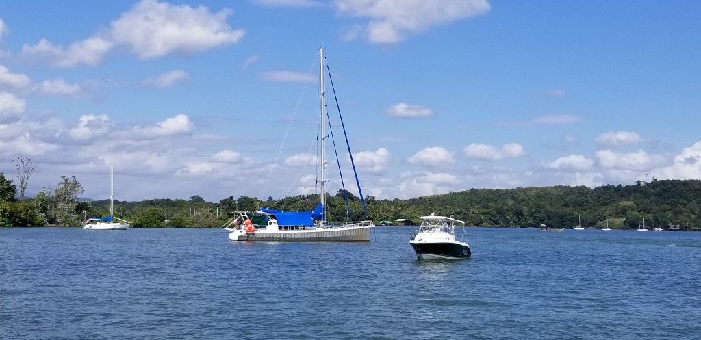 Aujourd’hui, le chantier sort de sa léthargie , de nouveaux bateaux viennent jeter l’ancre. Le soleil est revenu après une semaine de pluie. Un couple avec 2 enfants est arrivé ce matin de Panama, sur leur OVNI de 50 pieds, Bulle. Ils sont de retour du Canada où ils ont passé une année scolaire, et son passé par la côte ouest du Mexique. Ils sont depuis 8 ans dans le Pacifique en famille et font du charter pour gagner leur vie, en privilégiant l’accueil de familles avec enfants.