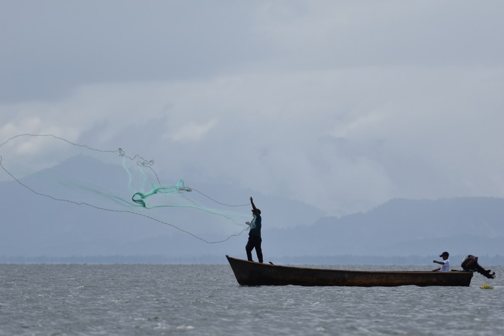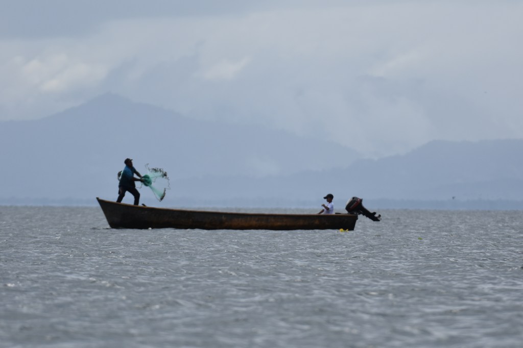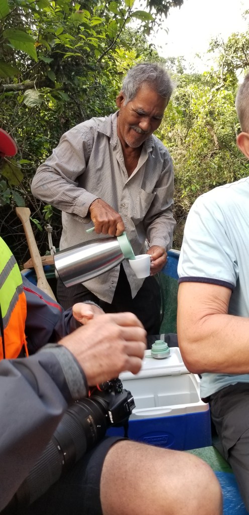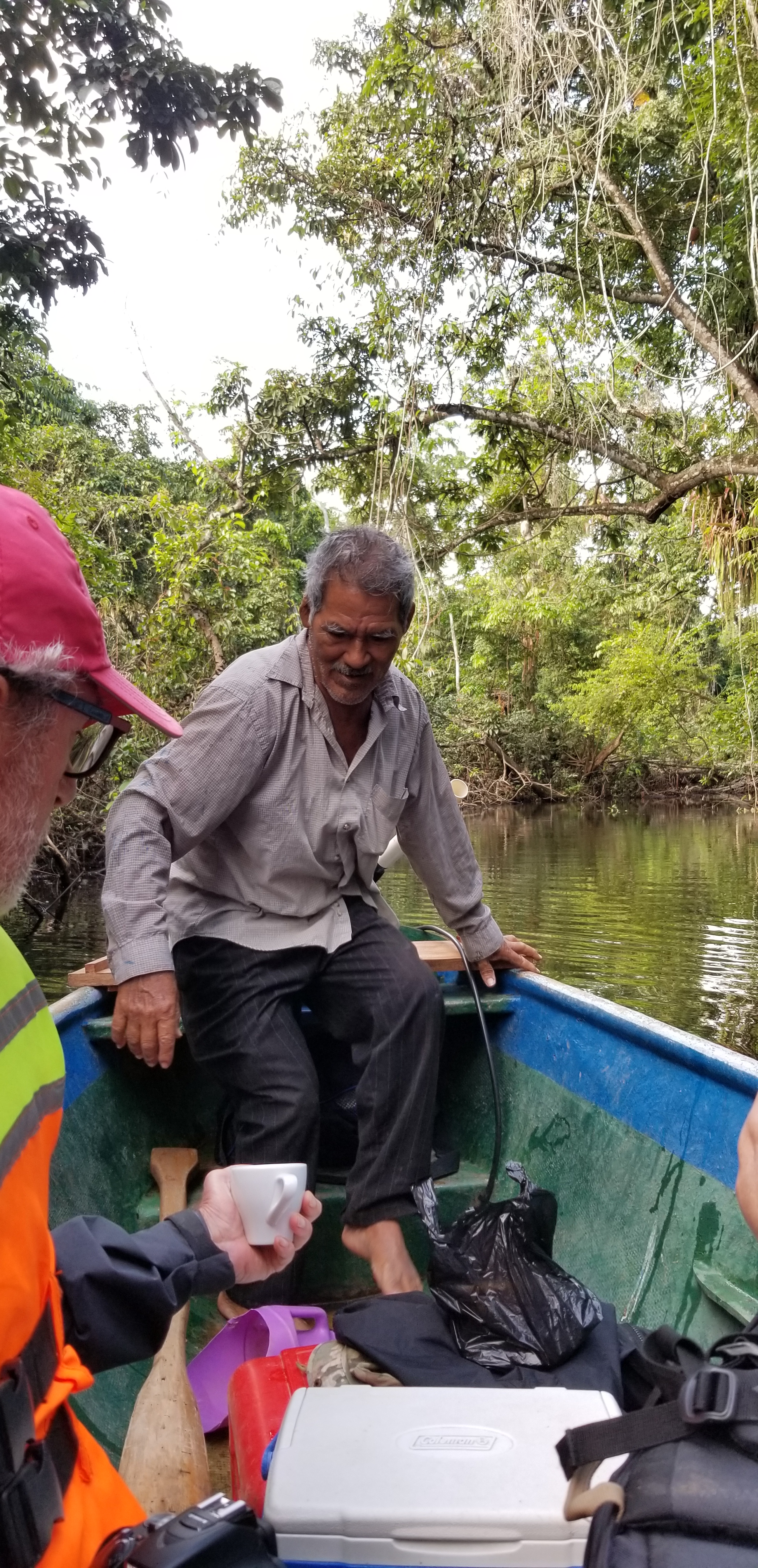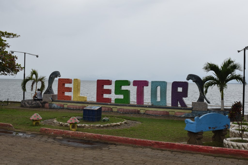 Grâce au GPS, Marc mesure avec son smartphone la vitesse du bateau : entre 20 et 22 nœuds ! En 2 heures, la lancha arrive au village de El Estor, proche de l’embouchure de la Polochic, qui sert au transport par bateau du café récolté dans les montagnes. C’est surtout un parc national préservé pour la beauté de ses paysages et sa faune : oiseaux, singes hurleurs ou momos, lamantins ou mamatis.