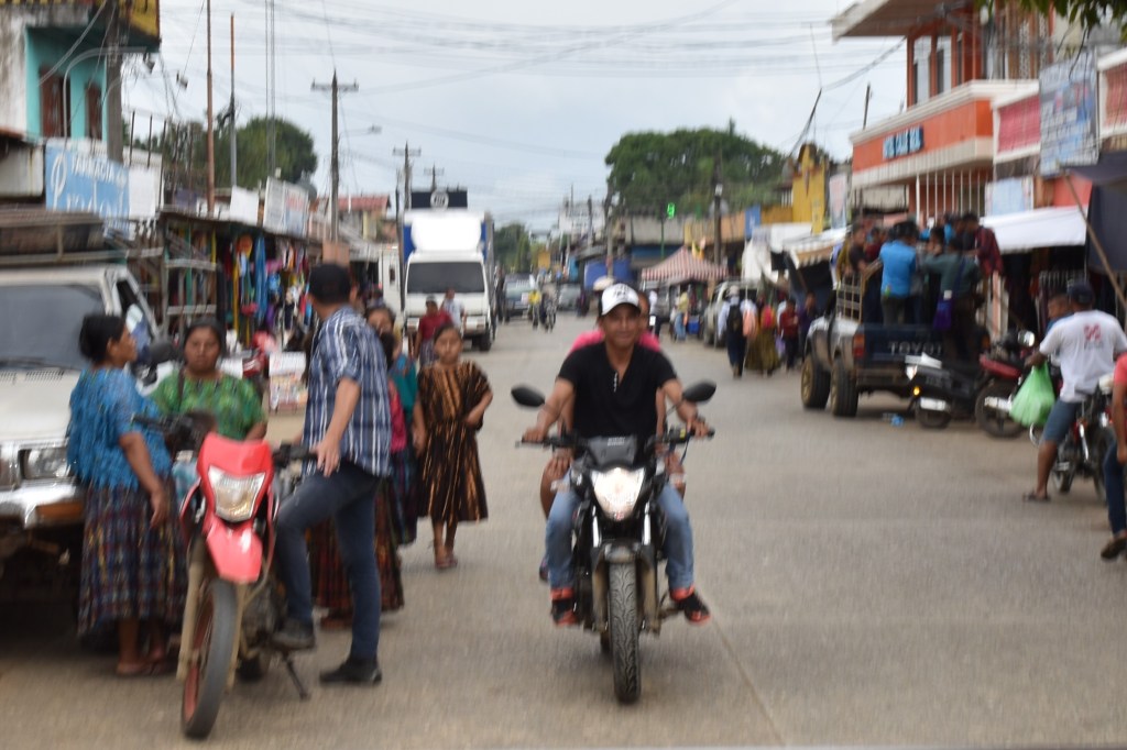 Ce village est toujours habité et comme partout au Guatemala, le lundi est jour de marché. Des paysannes viennent vendre une profusion de fruits légumes et fleurs sous les ombrages.
